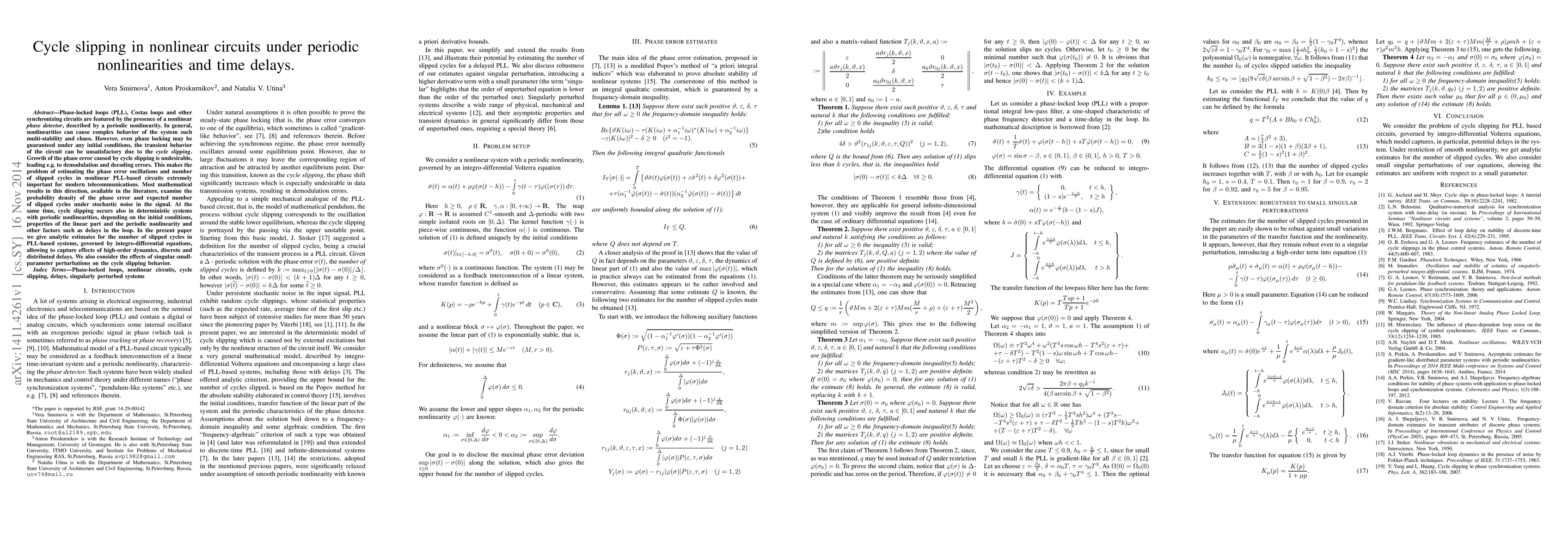 Researchers develop analytic estimates for cycle slipping in nonlinear circuits under periodic nonlinearities and time delays, aiming to improve performance of phase-locked loops in telecommunications.