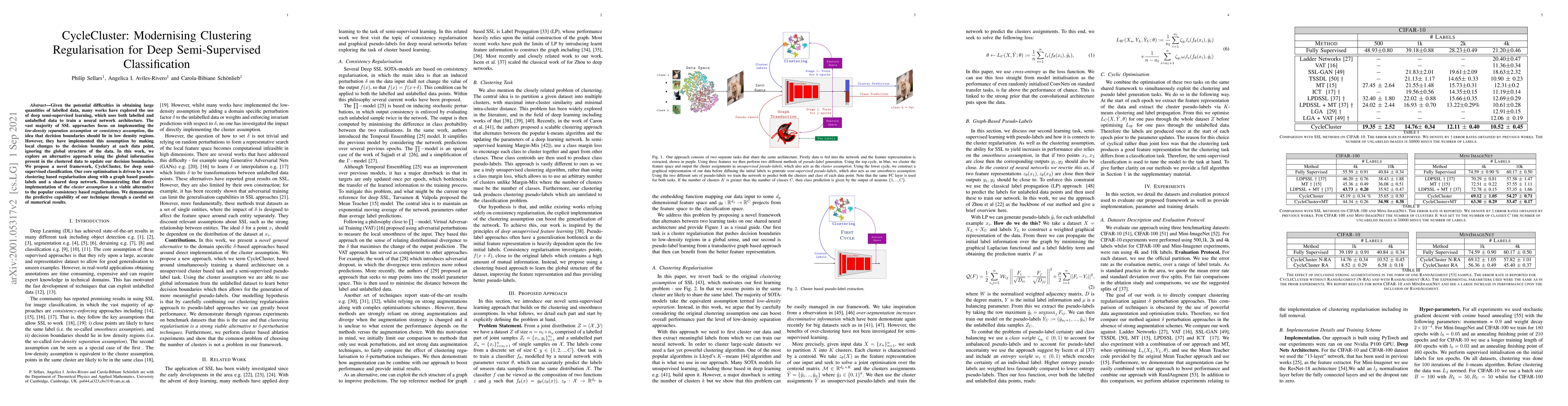 CycleCluster modernises clustering regularisation for deep semi-supervised classification, proposing a novel framework that leverages global data structure through clustering-based regularisation and graph-based pseudo-labels, demonstrating improved performance over consistency-based approaches.
