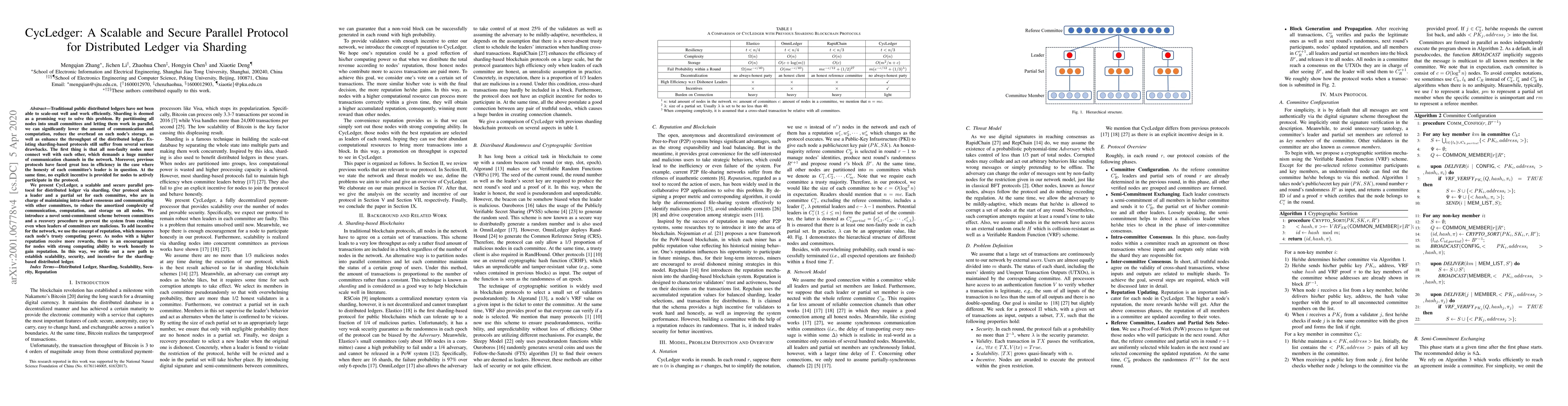 CycLedger introduces a scalable and secure parallel protocol for distributed ledgers using sharding, reducing communication and computation overhead by partitioning nodes into committees. It employs a semi-commitment scheme and reputation-based incentives to enhance security and participation, addressing previous inefficiencies and lack of incentives in sharding-based protocols.
