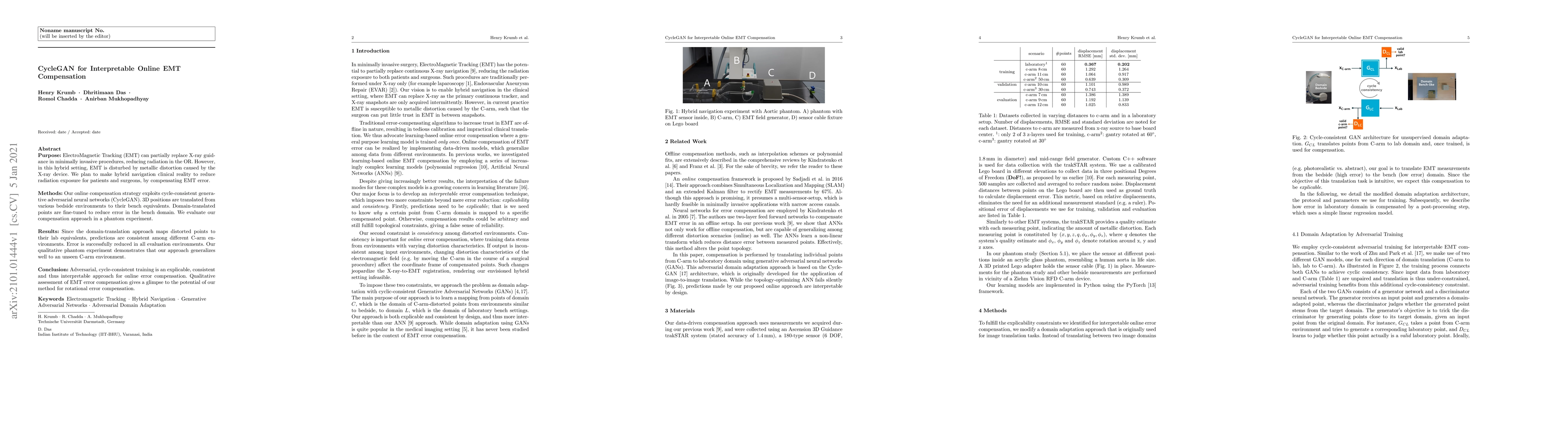 A new approach using CycleGAN reduces error in Electromagnetic Tracking (EMT) compensation, making it more interpretable and consistent for online navigation in minimally invasive procedures.