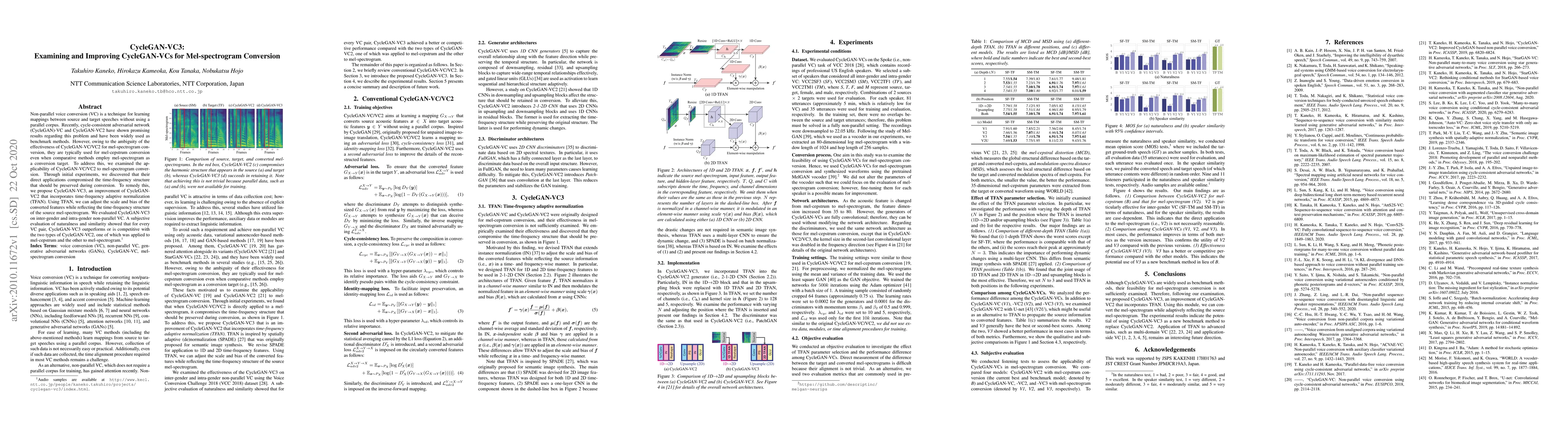 CycleGAN-VC3 improves CycleGAN-VC2 for mel-spectrogram conversion by incorporating time-frequency adaptive normalization (TFAN) to preserve the time-frequency structure. Subjective evaluations show CycleGAN-VC3 outperforms or matches CycleGAN-VC2 in non-parallel voice conversion for both inter-gender and intra-gender pairs.