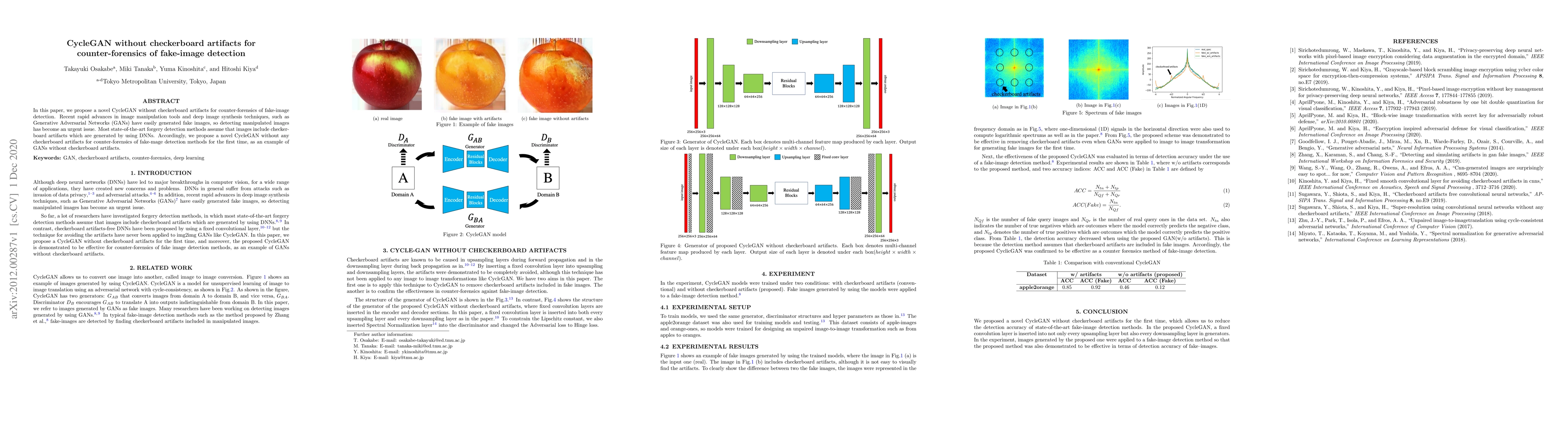 This paper proposes a novel CycleGAN model free from checkerboard artifacts to enhance the detection of manipulated images. Unlike existing methods that assume checkerboard artifacts, this new CycleGAN aims to improve counter-forensics techniques for detecting deep image synthesis techniques like GANs.