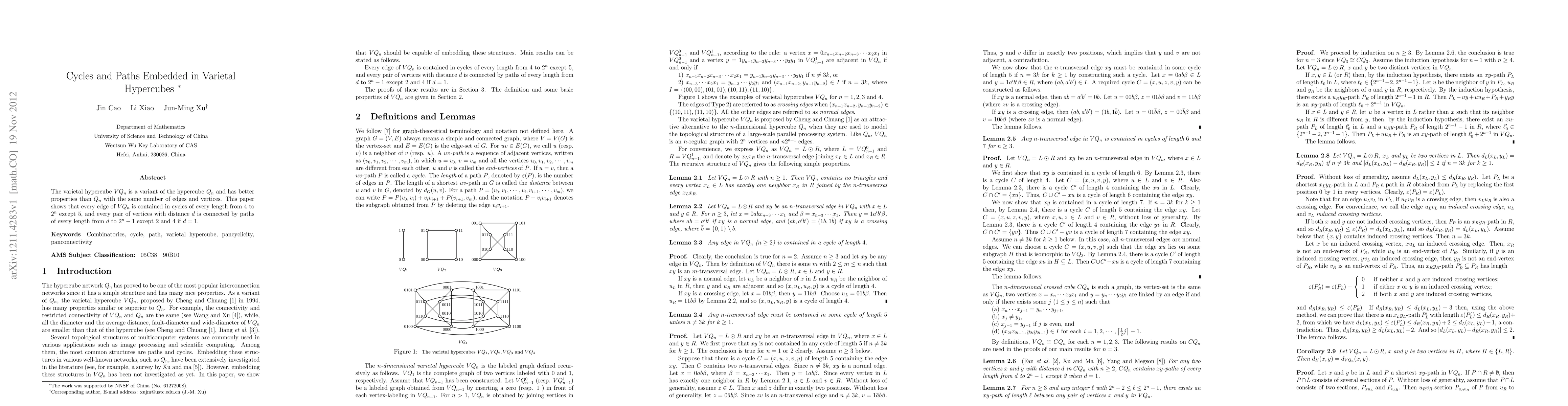 The varietal hypercube $VQ_n$ is a variant of the hypercube $Q_n$ and has better properties than $Q_n$ with the same number of edges and vertices. This paper shows that every edge of $VQ_n$ is contained in cycles of every length from 4 to $2^n$ except 5, and every pair of vertices with distance $d$ is connected by paths of every length from $d$ to $2^n-1$ except 2 and 4 if $d=1$.