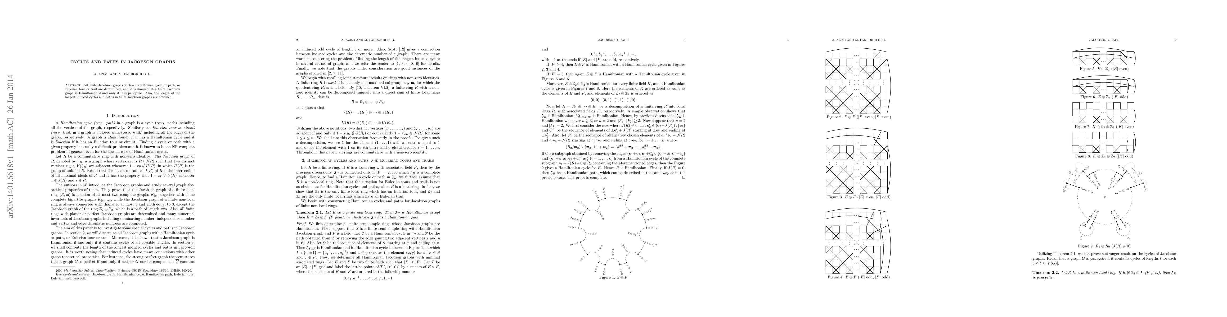 All finite Jacobson graphs with a Hamiltonian cycle or path, or Eulerian tour or trail are determined, and it is shown that a finite Jacobson graph is Hamiltonian if and only if it is pancyclic. Also, the length of the longest induced cycles and paths in finite Jacobson graphs are obtained.