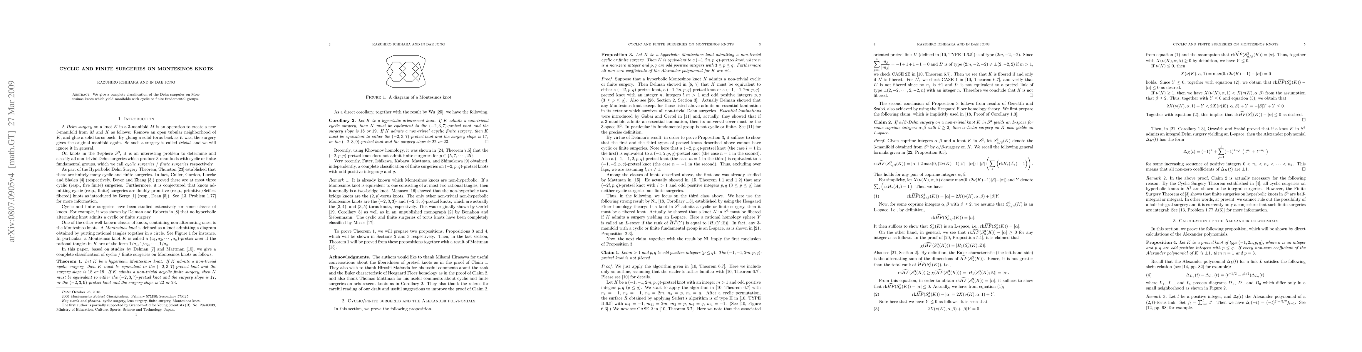 This paper classifies Dehn surgeries on Montesinos knots that result in manifolds with cyclic or finite fundamental groups, providing a comprehensive understanding of their topological properties. The study offers insights into the relationship between surgeries and the fundamental group structure of the resulting manifolds.