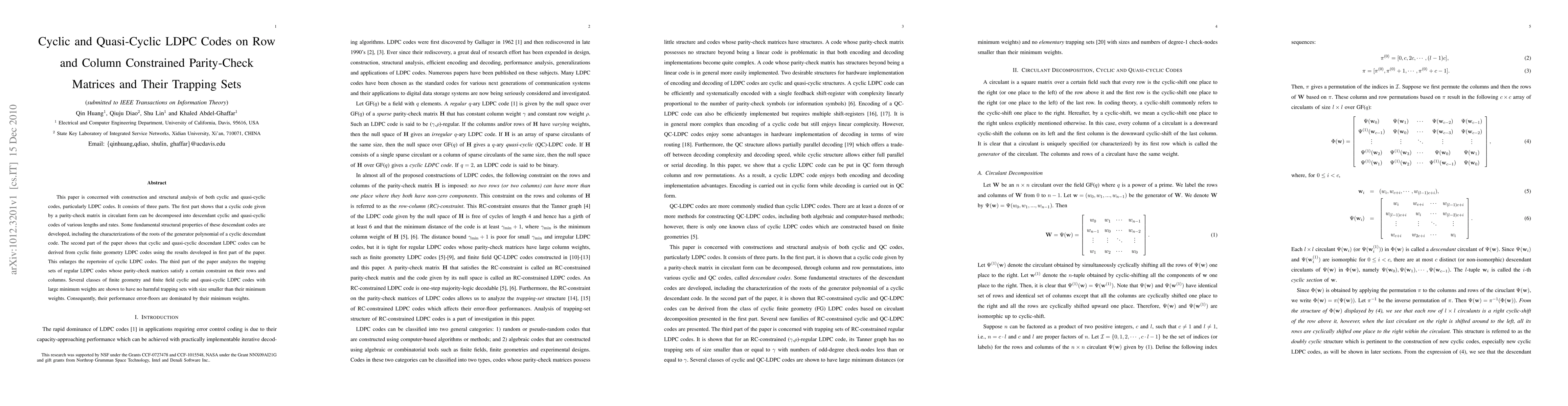 This paper explores cyclic and quasi-cyclic LDPC codes derived from constrained parity-check matrices, decomposing cyclic codes into descendant codes and analyzing their trapping sets, revealing that certain classes of these codes exhibit minimal error-floors due to the absence of small trapping sets.