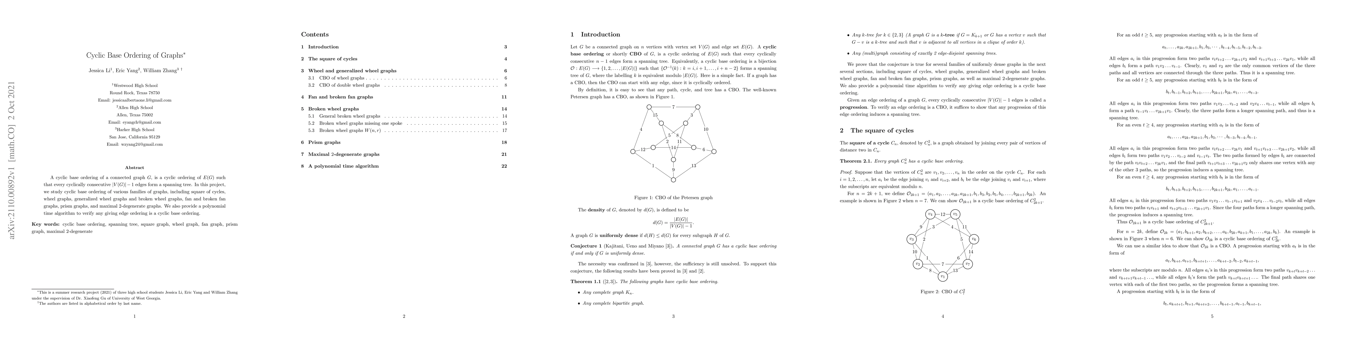The paper introduces a polynomial time algorithm for verifying cyclic base orderings and proves their existence for several graph families, extending the understanding of graph properties related to cyclic edge orderings.