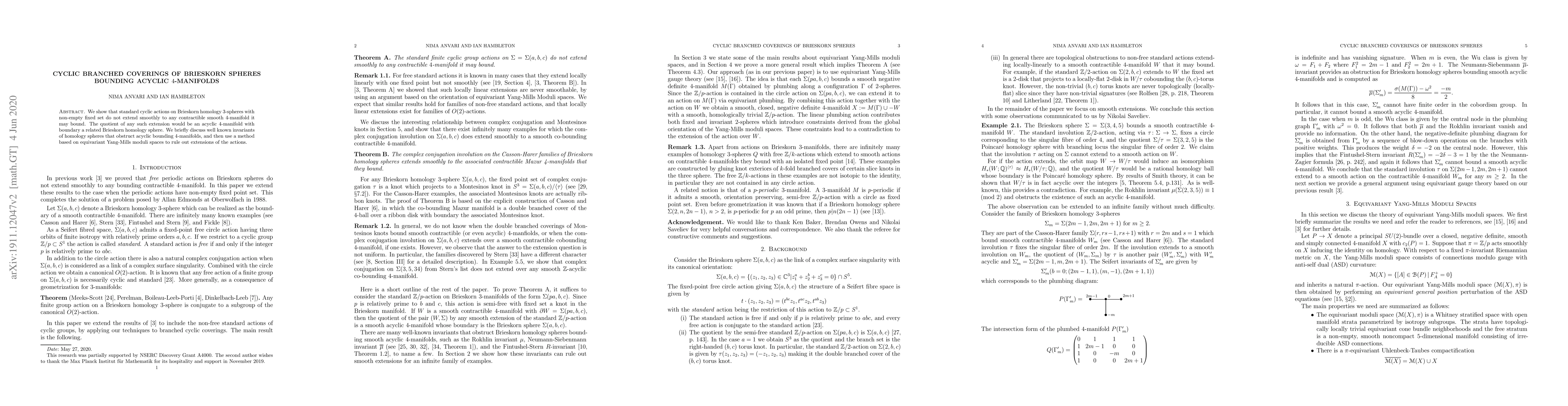This paper demonstrates that cyclic actions on Brieskorn spheres with fixed points cannot smoothly extend to any contractible 4-manifold they bound, leading to an acyclic 4-manifold with a related Brieskorn sphere as its boundary, utilizing equivariant Yang-Mills moduli spaces to disprove such extensions.