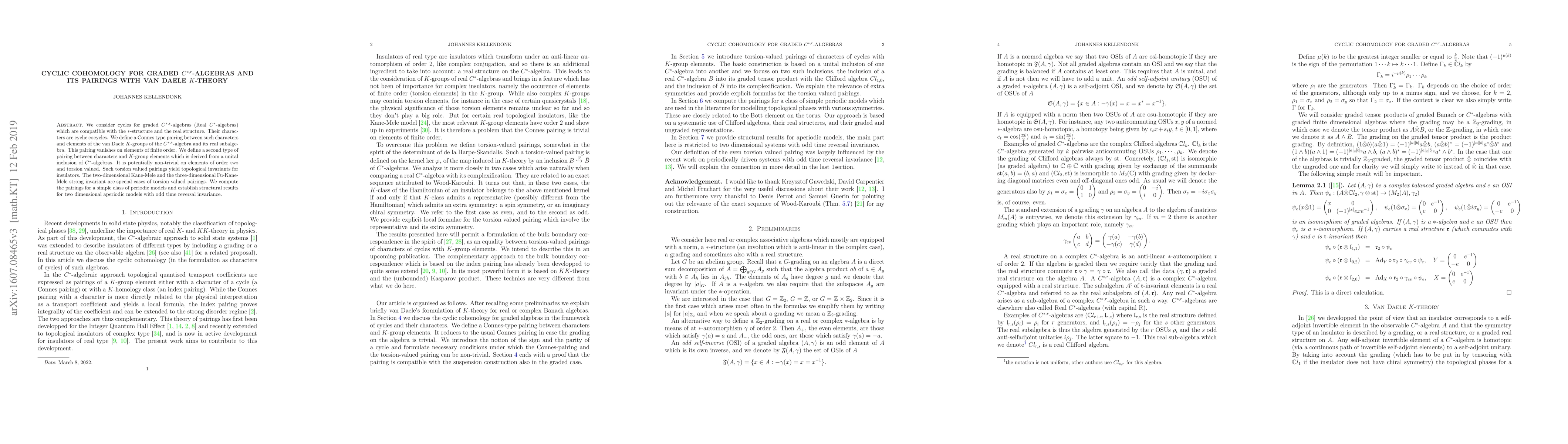 This paper explores cyclic cohomology for graded $C^{*,r}$-algebras and defines pairings with van Daele $K$-theory, revealing topological invariants for insulators, including the Kane-Mele and Fu-Kane-Mele strong invariants. It computes these pairings for periodic models and studies structural results for aperiodic models with odd time reversal invariance.