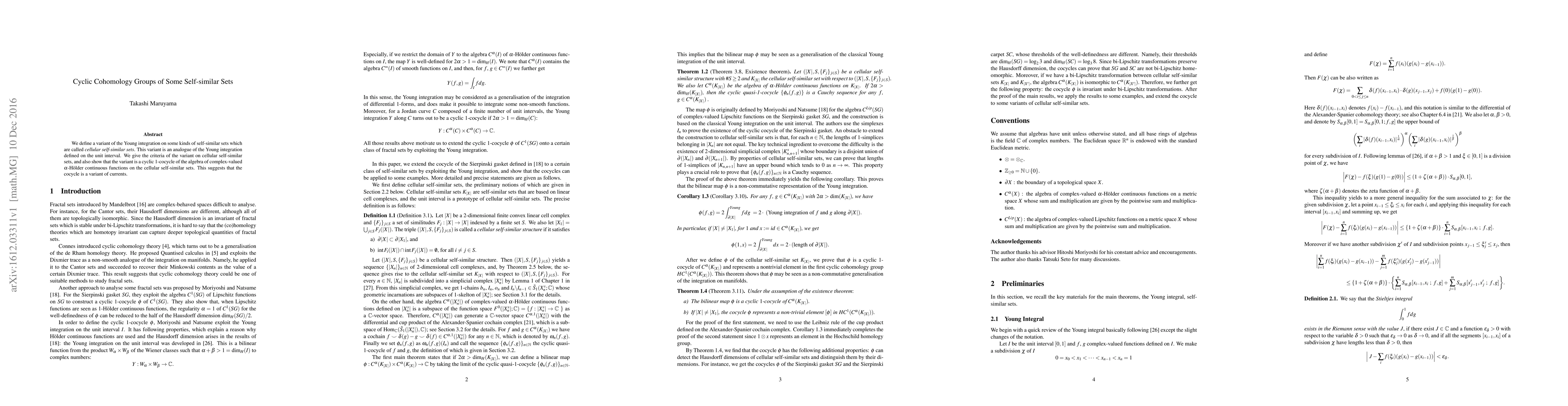 This paper introduces a new variant of Young integration on cellular self-similar sets, analogous to the unit interval's Young integration, and demonstrates that it is a cyclic 1-cocycle for the algebra of H\"older continuous functions, suggesting it functions as a variant of currents.