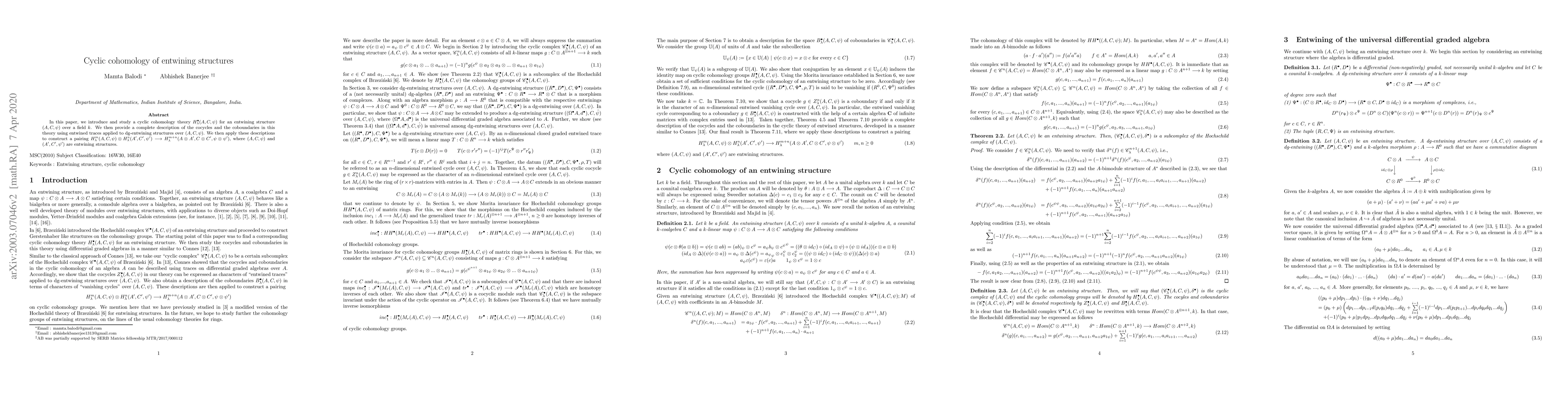 This paper develops a cyclic cohomology theory $H^\bullet_\lambda(A,C,\psi)$ for entwining structures and provides a detailed analysis of cocycles and coboundaries using entwined traces. It constructs a pairing between the cohomology groups of different entwining structures.