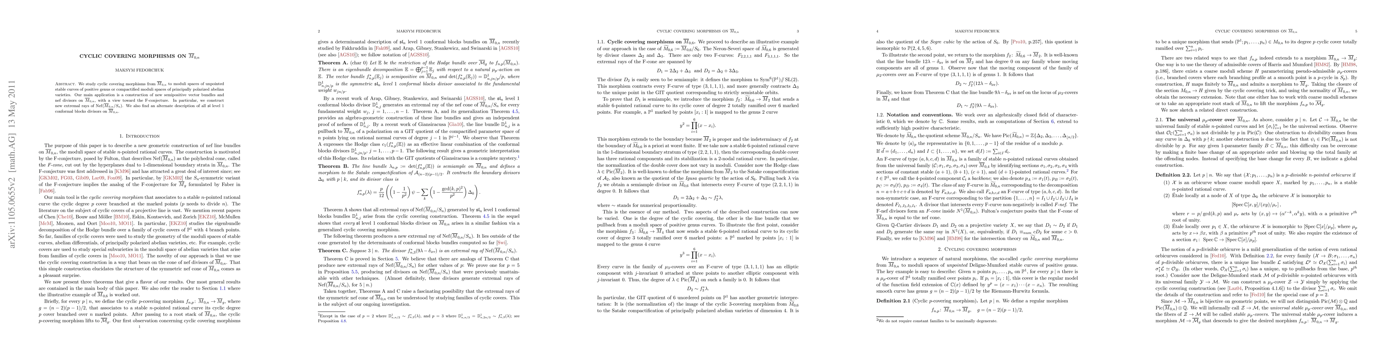 This paper investigates cyclic covering morphisms from $\bar{M}_{0,n}$ to moduli spaces of unpointed stable curves and abelian varieties, constructing new semipositive vector bundles and nef divisors. It also identifies new extremal rays in the symmetric nef cone and provides an alternate description of sl level 1 conformal blocks divisors.