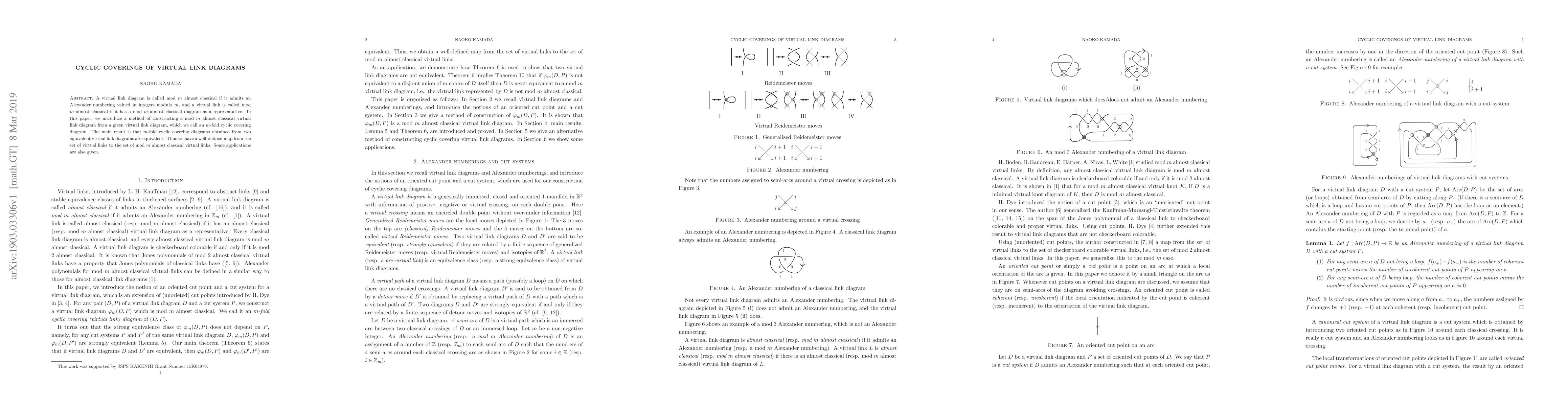 The paper introduces a method of constructing a mod m almost classical virtual link diagram from a given virtual link diagram, called m-fold cyclic covering diagrams, using cut systems and cut point moves.