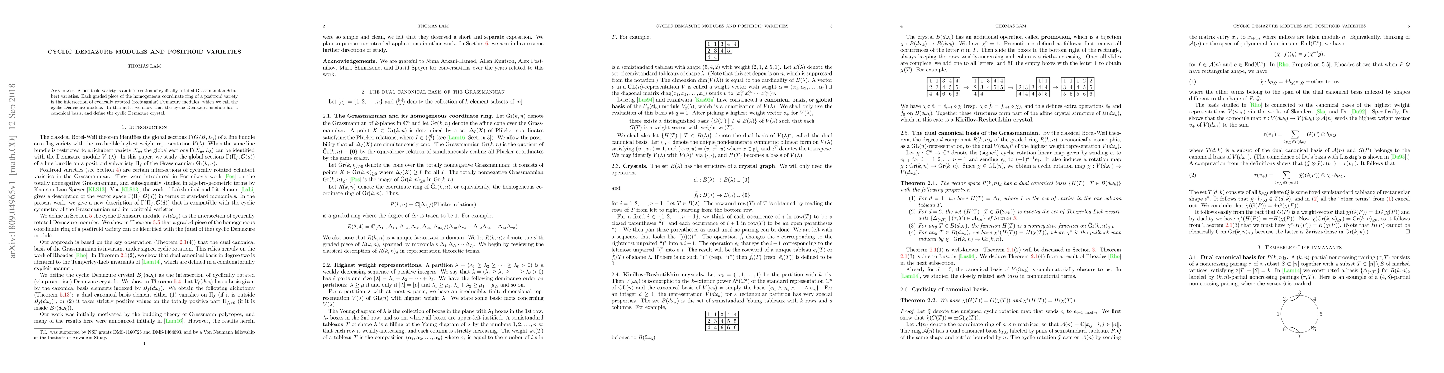 This paper demonstrates that cyclic Demazure modules, which intersect cyclically rotated rectangular Demazure modules within positroid varieties, possess a canonical basis. It also introduces the cyclic Demazure crystal to further study these modules.