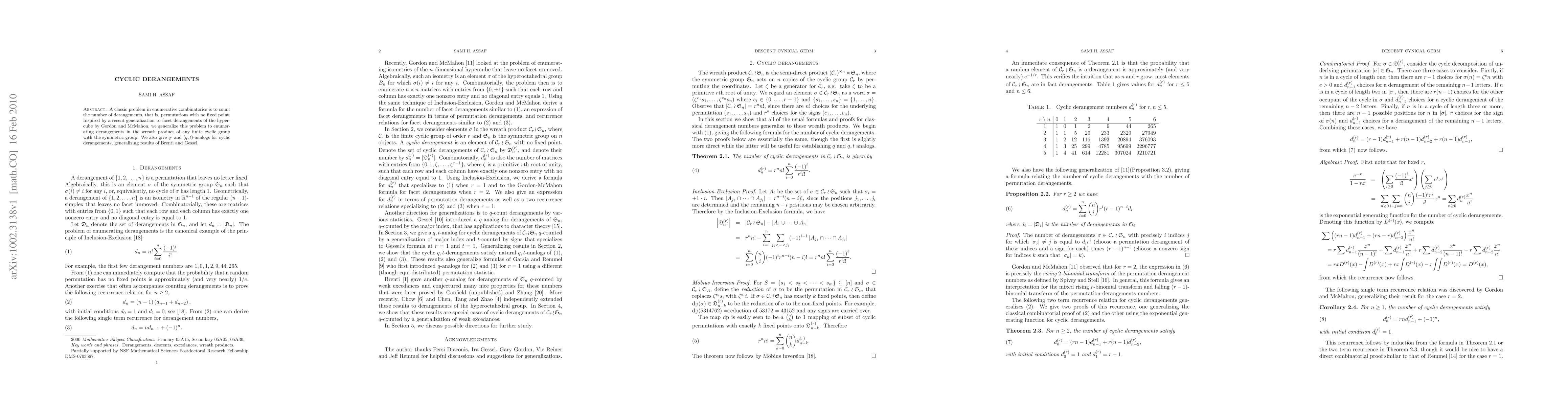 This paper generalizes the concept of derangements to cyclic groups within the wreath product with symmetric groups, providing enumeration methods and introducing q-analogs and (q, t)-analogs for cyclic derangements, extending previous work by Brenti and Gessel.