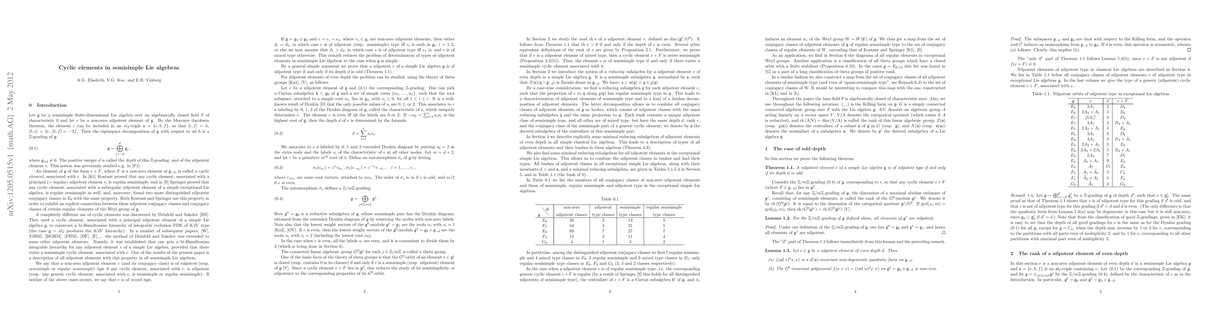 Summary: The paper develops a theory of cyclic elements within semisimple Lie algebras and utilizes this theory to construct regular elements in Weyl groups explicitly.