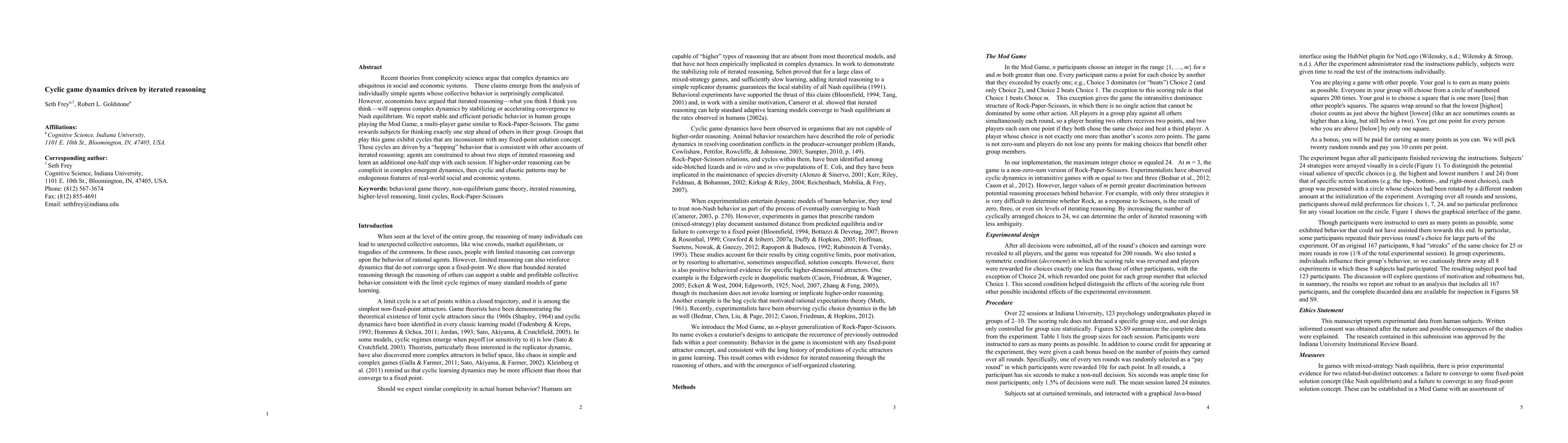 Human groups playing a game that rewards thinking ahead exhibit periodic cycles inconsistent with fixed-point solutions, suggesting complex dynamics can emerge from iterated reasoning. These cycles may be endogenous features of real-world social and economic systems.