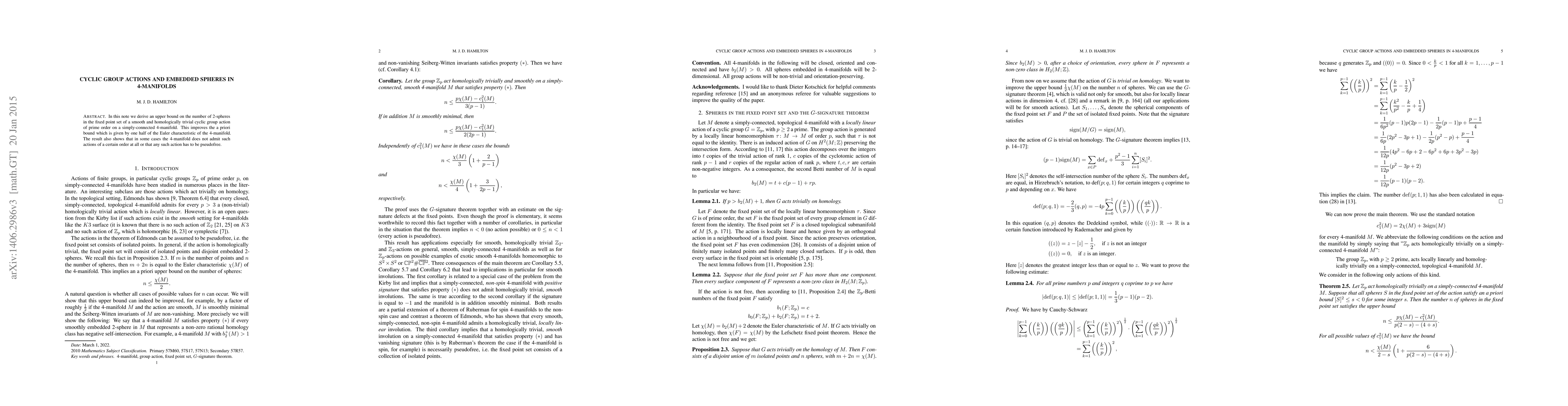 This paper establishes an improved upper bound on the number of 2-spheres in the fixed point set of a cyclic group action on a simply-connected 4-manifold, surpassing the previous bound based on the Euler characteristic. It also shows that certain 4-manifolds may not support such actions or require them to be pseudofree.
