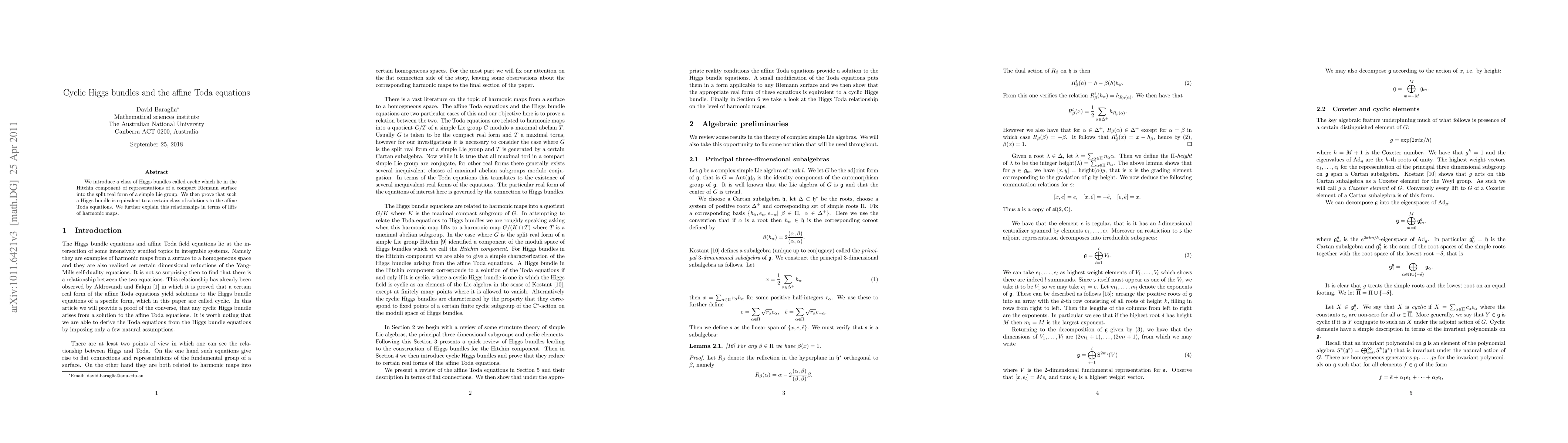 This paper introduces cyclic Higgs bundles within the Hitchin component and demonstrates their equivalence to solutions of the affine Toda equations, linking these structures through lifts of harmonic maps.