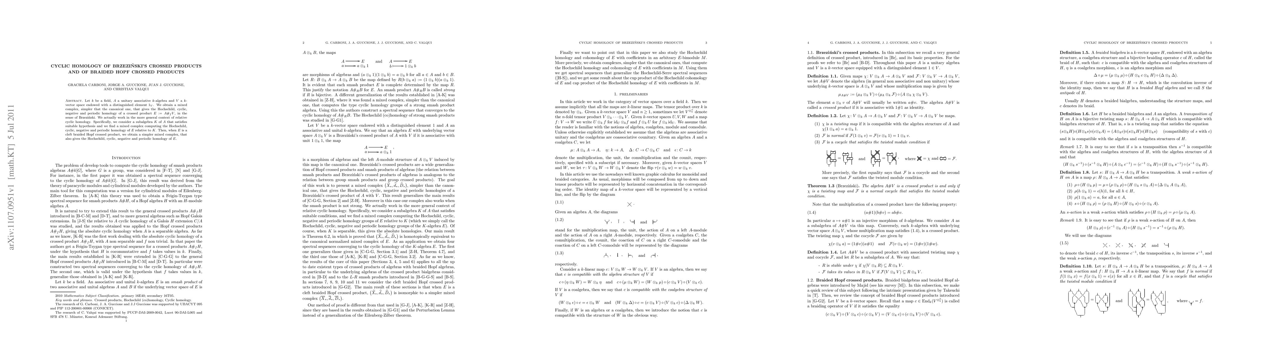 Let k be a field, A a unitary associative k-algebra and V a k-vector space endowed with a distinguished element 1_V. We obtain a mixed complex, simpler that the canonical one, that gives the Hochschild, cyclic, negative and periodic homology of a crossed product E:=A#_f V, in the sense of Brzezinski. We actually work in the more general context of relative cyclic homology. Specifically, we consider a subalgebra K of A that satisfies suitable hypothesis and we find a mixed complex computing the Hochschild, cyclic, negative and periodic homology of E relative to K. Then, when E is a cleft braided Hopf crossed product, we obtain a simpler mixed complex, that also gives the Hochschild, cyclic, negative and periodic homology of E.