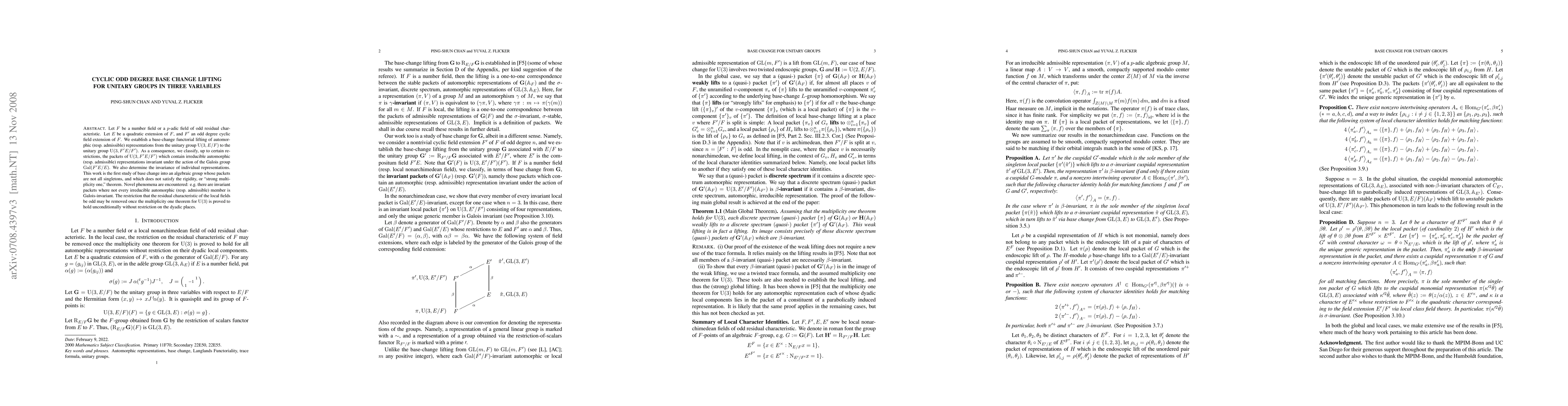This paper investigates base-change lifting for automorphic representations of the unitary group U(3,E/F) to U(3,F'E/F'), demonstrating a classification of invariant packets under the Galois group action, and employing the trace formula and Howe correspondence to uncover novel phenomena like non-Galois-invariant irreducible members in certain packets.