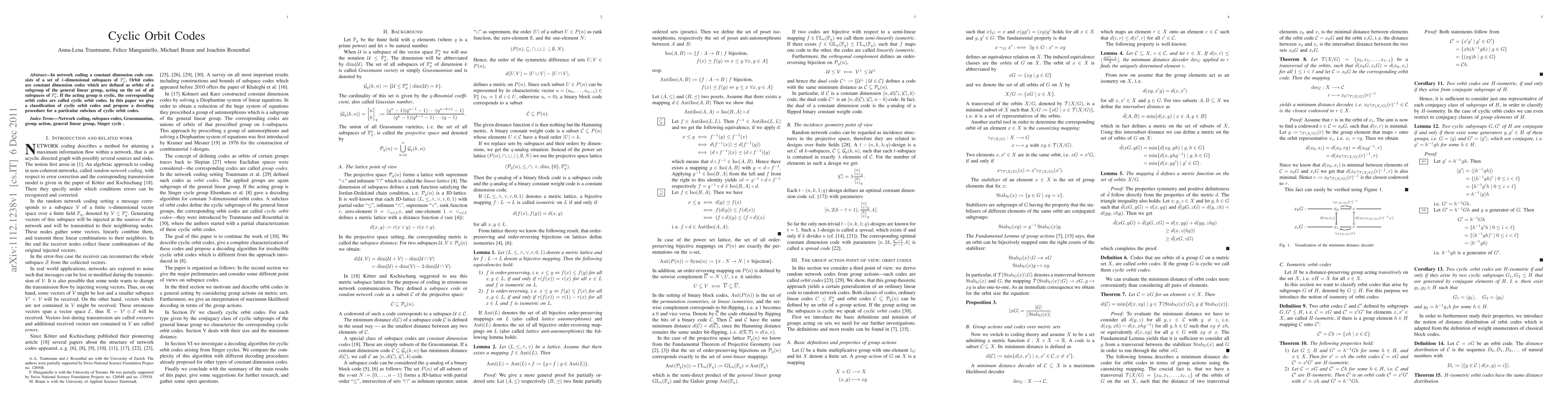 In network coding a constant dimension code consists of a set of k-dimensional subspaces of F_q^n. Orbit codes are constant dimension codes which are defined as orbits of a subgroup of the general linear group, acting on the set of all subspaces of F_q^n. If the acting group is cyclic, the corresponding orbit codes are called cyclic orbit codes. In this paper we give a classification of cyclic orbit codes and propose a decoding procedure for a particular subclass of cyclic orbit codes.