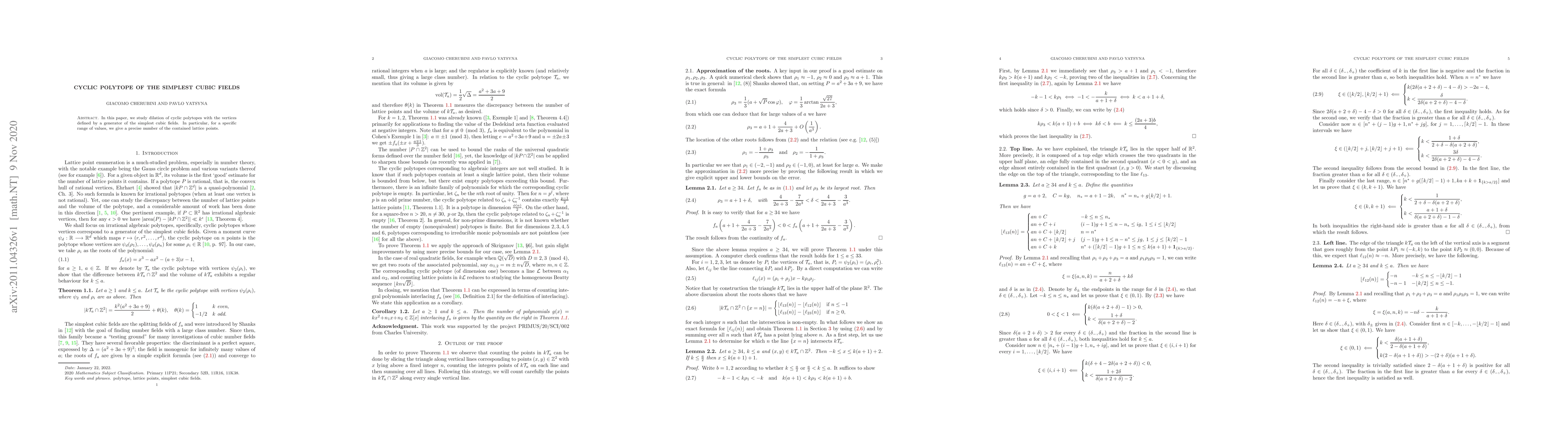 This paper investigates the dilation of cyclic polytopes whose vertices are generated by elements of the simplest cubic fields, providing an exact count of contained lattice points for a particular value range.