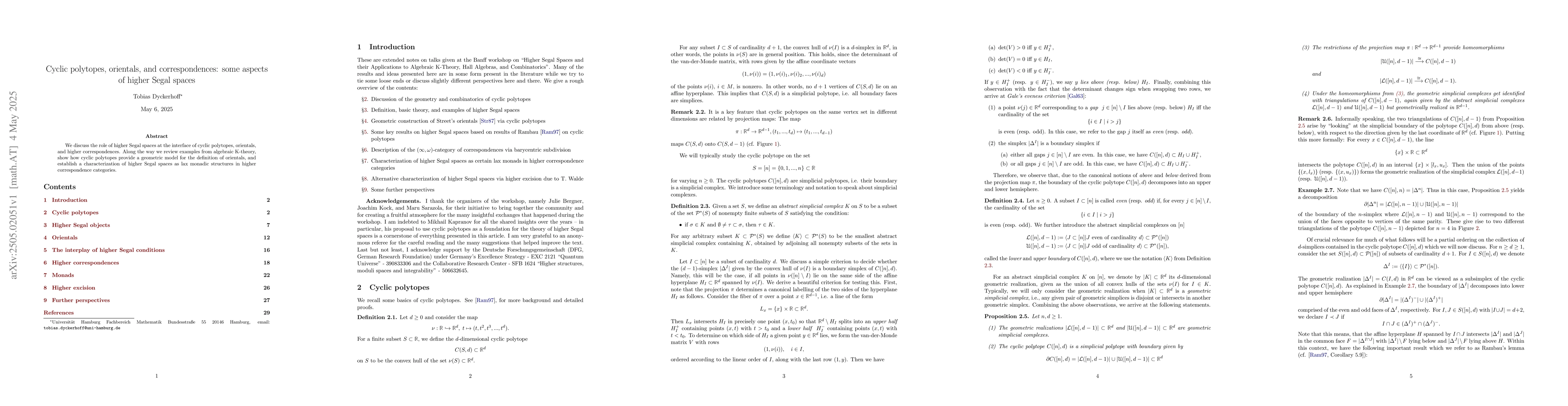 We discuss the role of higher Segal spaces at the interface of cyclic polytopes, orientals, and higher correspondences. Along the way we review examples from algebraic K-theory, show how cyclic polytopes provide a geometric model for the definition of orientals, and establish a characterization of higher Segal spaces as lax monadic structures in higher correspondence categories.