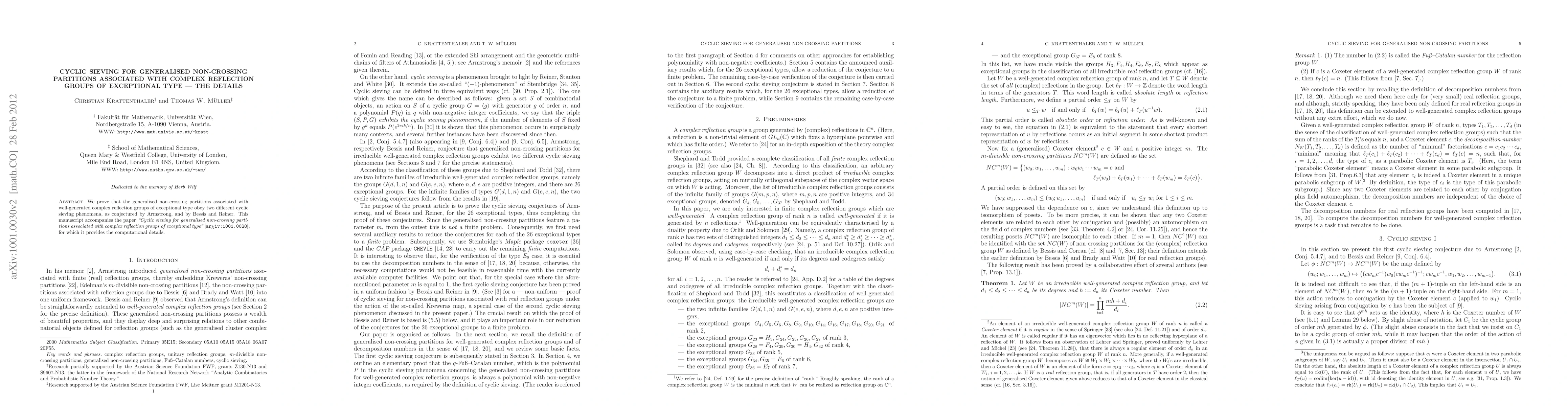 We prove that the generalised non-crossing partitions associated to well-generated complex reflection groups of exceptional type obey two different cyclic sieving phenomena, as conjectured by Armstrong, respectively by Bessis and Reiner. This manuscript accompanies the paper "Cyclic sieving for generalised non-crossing partitions associated to complex reflection groups of exceptional type" [arXiv:1001.0028], for which it provides the computational details.