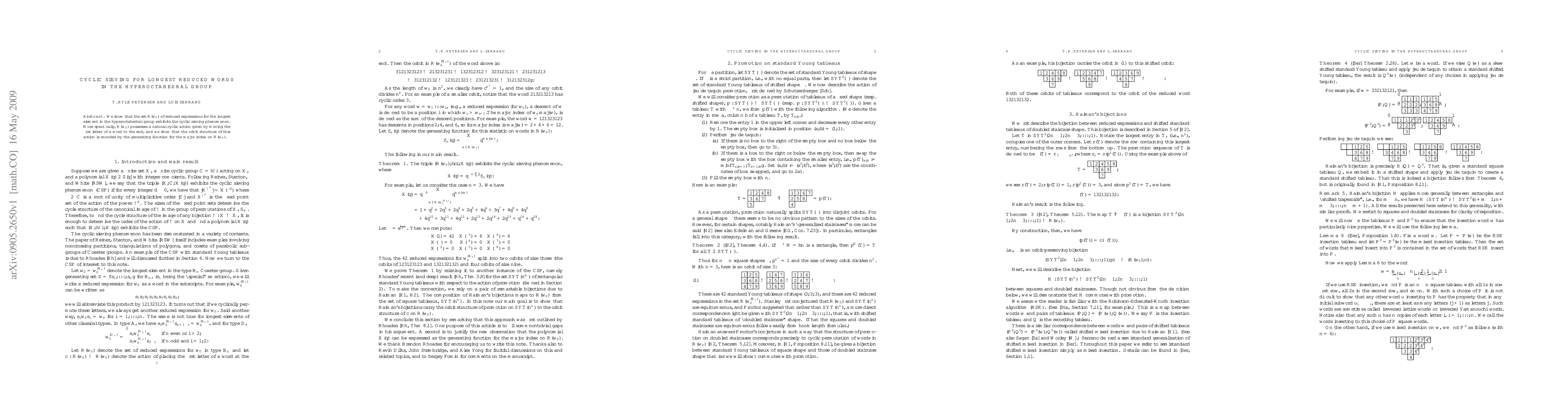 The paper demonstrates the cyclic sieving phenomenon in the set R(w_0) of reduced expressions for the longest element in the hyperoctahedral group, showing that its orbit structure is captured by the generating function for the major index. This cyclic action involves rotating the first letter of each word to the end.