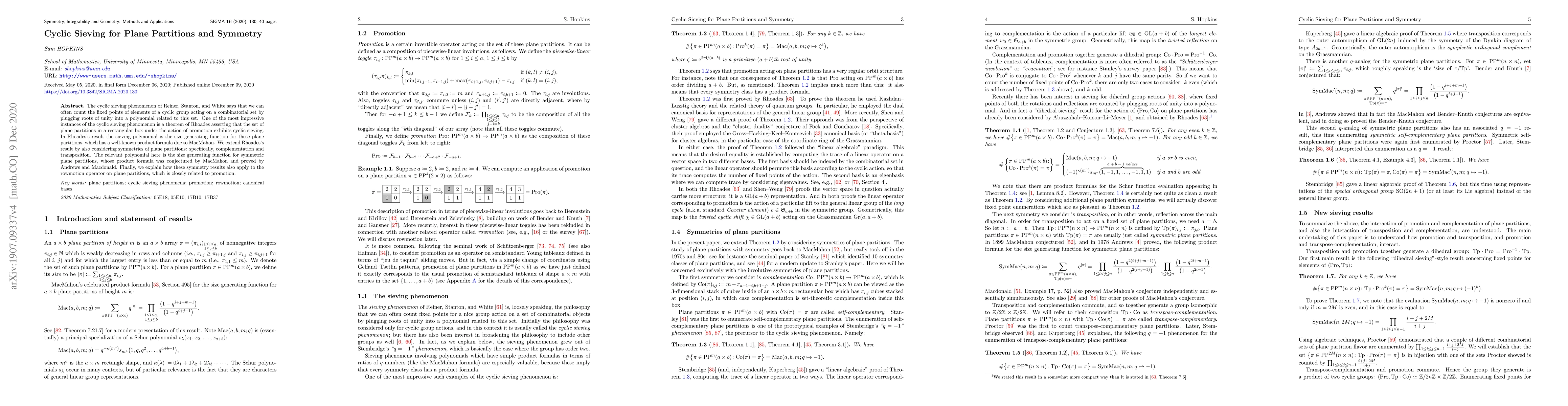 This paper extends Rhoades's cyclic sieving phenomenon to plane partitions under promotion, by incorporating symmetries like complementation and transposition. It uses the size generating function for symmetric plane partitions, proving its product formula, and connects these findings to the rowmotion operator on plane partitions.