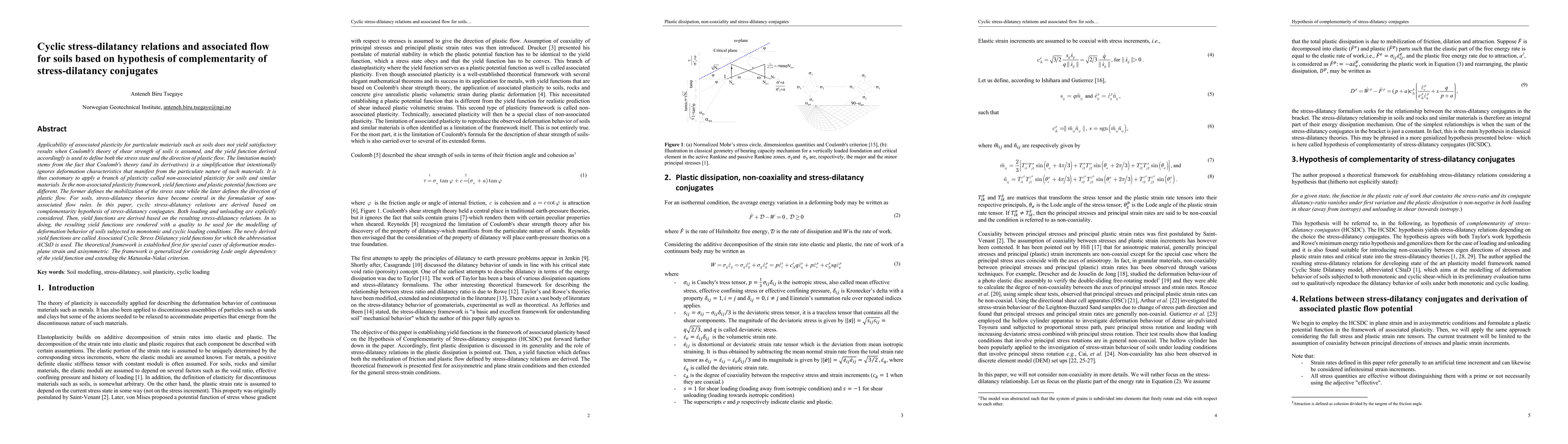 Applicability of associated plasticity for particulate materials such as soils does not yield satisfactory results when Coulomb's theory of shear strength of soils is assumed, and the yield function derived accordingly is used to define both the stress state and the direction of plastic flow. The limitation mainly stems from the fact that Coulomb's theory (and its derivatives) is a simplification that intentionally ignores deformation characteristics that manifest from the particulate nature of such materials. It is thus customary to apply a branch of plasticity called non-associated plasticity for soils and similar materials. In the non-associated plasticity framework, yield functions and plastic potential functions are different. The former defines the mobilization of the stress state while the later defines the direction of plastic flow. For soils, stress-dilatancy theories have become central in the formulation of non-associated flow rules. In this paper, cyclic stress-dilatancy relations are derived based on complementarity hypothesis of stress-dilatancy conjugates. Both loading and unloading are explicitly considered. Then, yield functions are derived based on the resulting stress-dilatancy relations. In so doing, the resulting yield functions are rendered with a quality to be used for the modelling of deformation behavior of soils subjected to monotonic and cyclic loading conditions. The newly derived yield functions are called Associated Cyclic Stress Dilatancy yield functions for which the abbreviation ACStD is used. The theoretical framework is established first for special cases of deformation modes-plane strain and axisymmetric. The framework is generalized for considering Lode angle dependency of the yield function and extending the Matusoka-Nakai criterion.