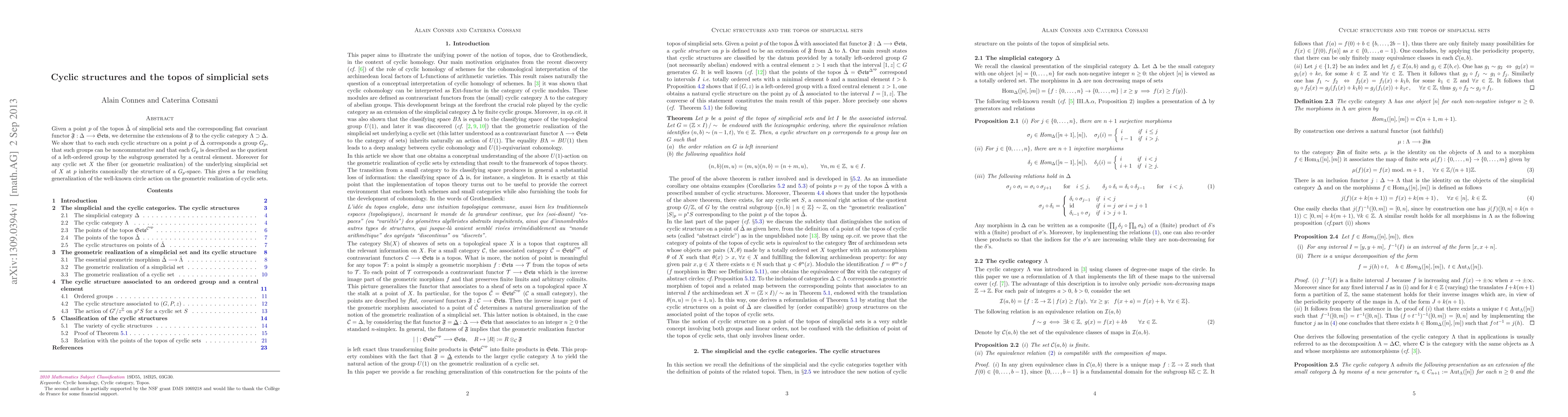 Given a point p of the topos of simplicial sets and the corresponding flat covariant functor F from the small category Delta to the category of sets, we determine the extensions of F to the cyclic category. We show that to each such cyclic structure on a point p of the topos of simplicial sets corresponds a group G(p), that such groups can be noncommutative and that each G(p) is described as the quotient of a left-ordered group by the subgroup generated by a central element. Moreover for any cyclic set X, the fiber (or geometric realization) of the underlying simplicial set of X at p inherits canonically the structure of a G(p)-space. This gives a far reaching generalization of the well-known circle action on the geometric realization of cyclic sets.