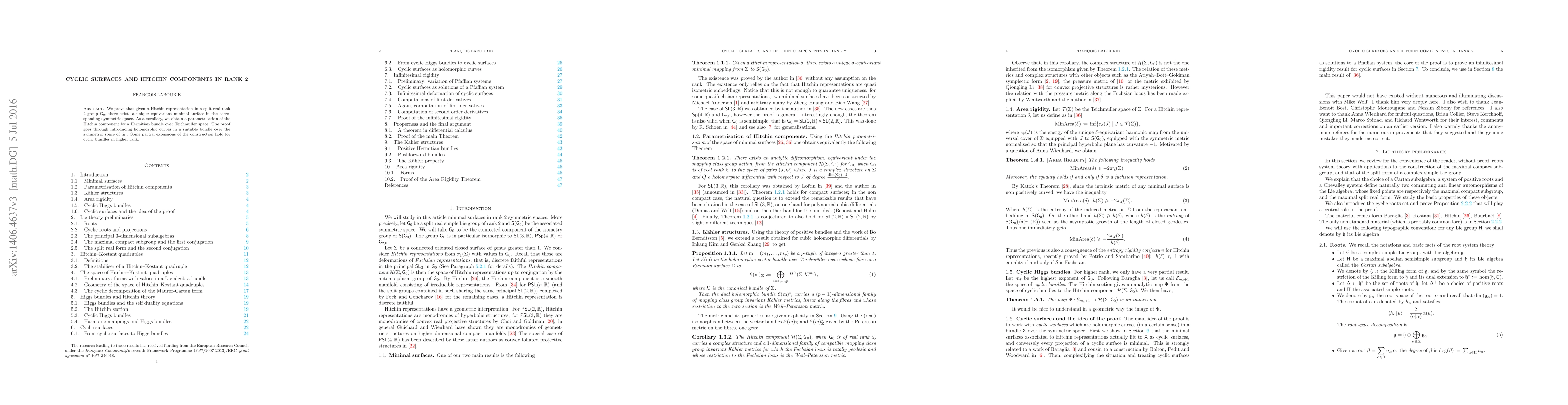We prove that given a Hitchin representation in a real split rank 2 group $\mathsf G_0$, there exists a unique equivariant minimal surface in the corresponding symmetric space. As a corollary, we obtain a parametrization of the Hitchin components by a Hermitian bundle over Teichm\"uller space. The proof goes through introducing holomorphic curves in a suitable bundle over the symmetric space of $\mathsf G_0$. Some partial extensions of the construction hold for cyclic bundles in higher rank.
