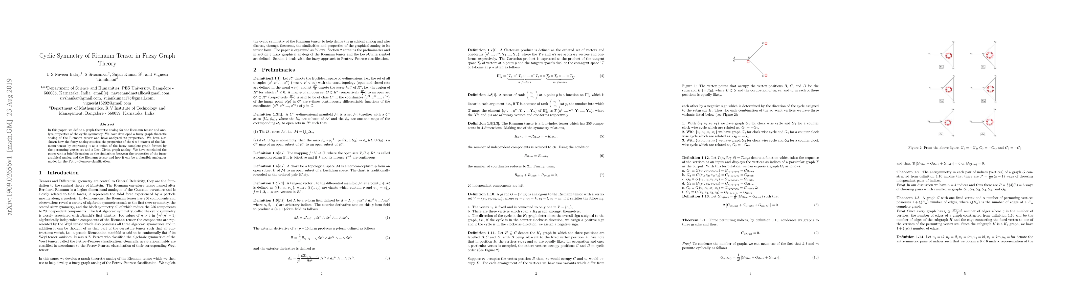 In this paper, we define a graph-theoretic analog for the Riemann tensor and analyze properties of the cyclic symmetry. We have developed a fuzzy graph-theoretic analog of the Riemann tensor and have analyzed its properties. We have also shown how the fuzzy analog satisfies the properties of the 6X6 matrix of the Riemann tensor by expressing it as a union of the fuzzy complete graph formed by the permuting vertex set and a Levi-Civita graph analog. We have concluded the paper with a brief discussion on the similarities between the properties of the fuzzy graphical analog and the Riemann tensor and how it can be a plausible analogous model for the Petrov-Penrose classification.