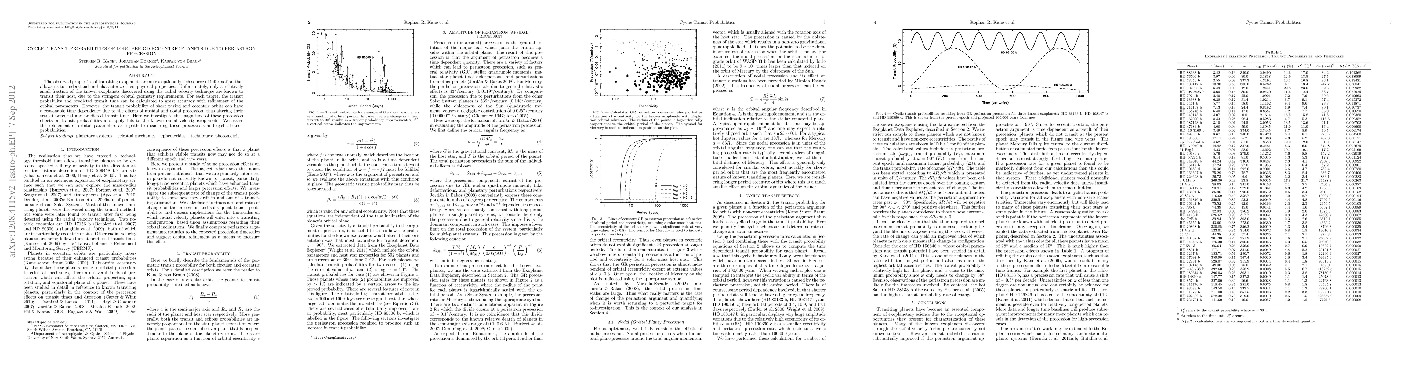 This paper examines the impact of periastron precession on transit probabilities for long-period eccentric exoplanets, focusing on how these precessions alter transit potentials and times. It proposes a method to refine orbital parameters to measure these effects and determine cyclic transit probabilities for known radial velocity exoplanets.