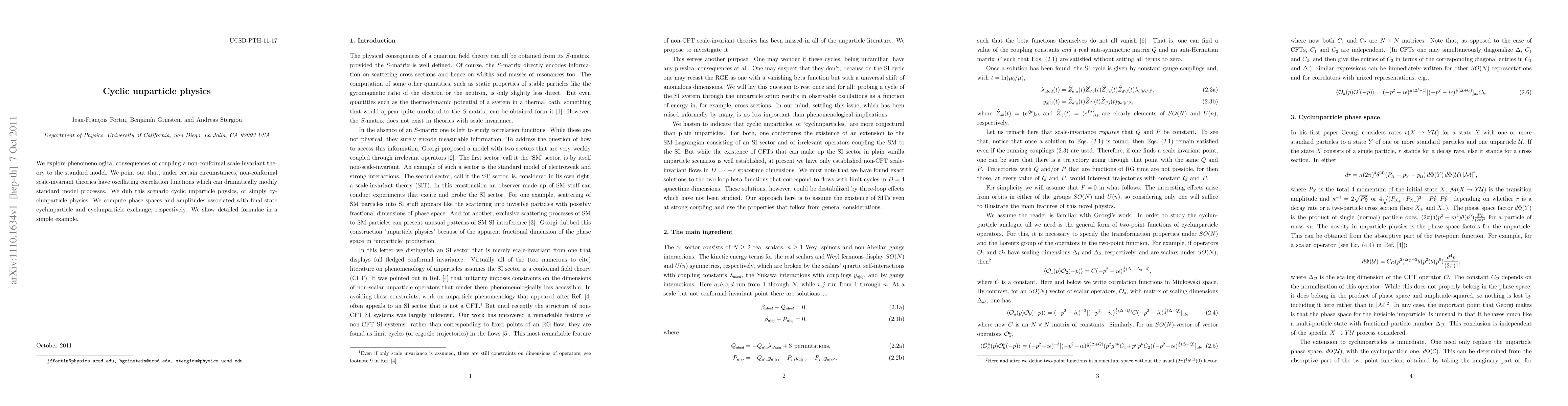 Researchers explore a new physics theory called cyclic unparticle physics, which suggests that coupling a non-conformal scale-invariant theory to the standard model can create oscillating correlation functions that dramatically modify known processes.