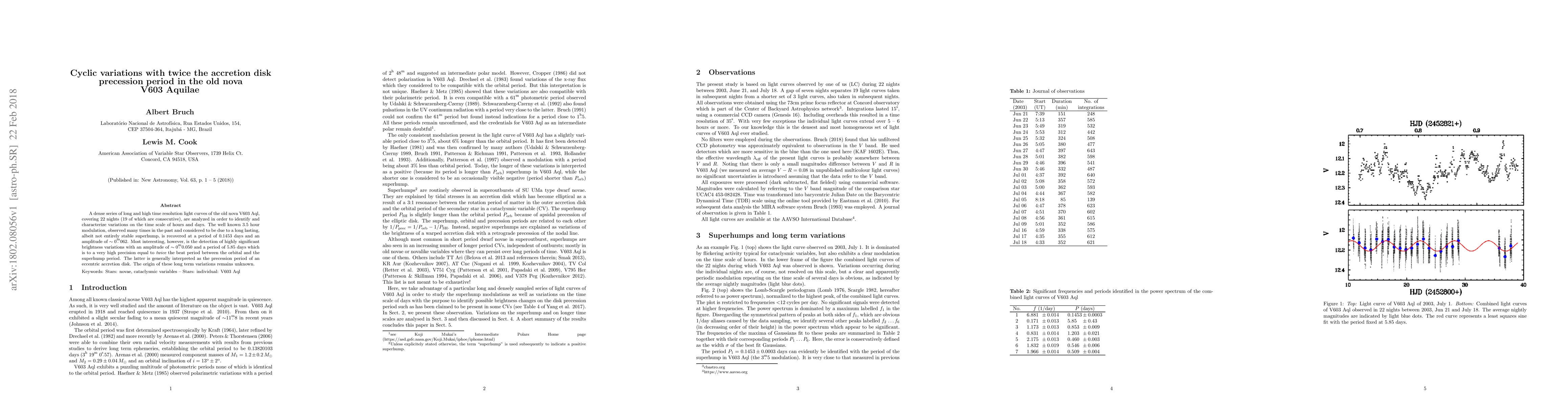 A dense series of long and high time resolution light curves of the old nova V603 Aql, covering 22 nights (19 of which are consecutive), are analyzed in order to identify and characterize variations on the time scale of hours and days. The well known 3.5 hour modulation, observed many times in the past and considered to be due to a long lasting, albeit not entirely stable superhump, is recovered at a period of 0.1453 days and an amplitude of 0.062 mag. Most interesting, however, is the detection of highly significant brightness variations with an amplitude of 0.050 mag and a period of 5.85 days which is to a very high precision equal to twice the beat period between the orbital and the superhump period. The latter is generally interpreted as the precession period of an eccentric accretion disk. The origin of these long term variations remains unknown.