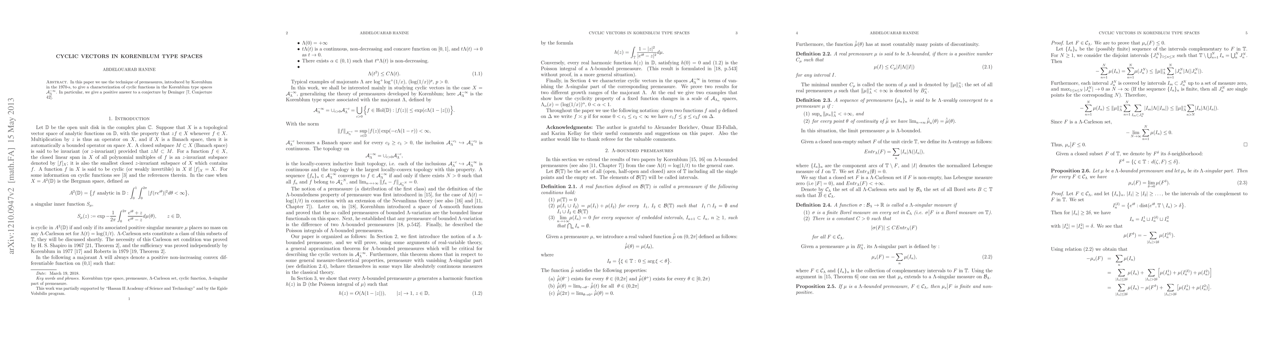 This paper characterizes cyclic functions in Korenblum type spaces $\mathcal{A}_{\Lambda}^{-\infty}$ using premeasures, providing a solution to Deninger's conjecture regarding these functions. The study employs Korenblum's technique from the 1970s to achieve this characterization.