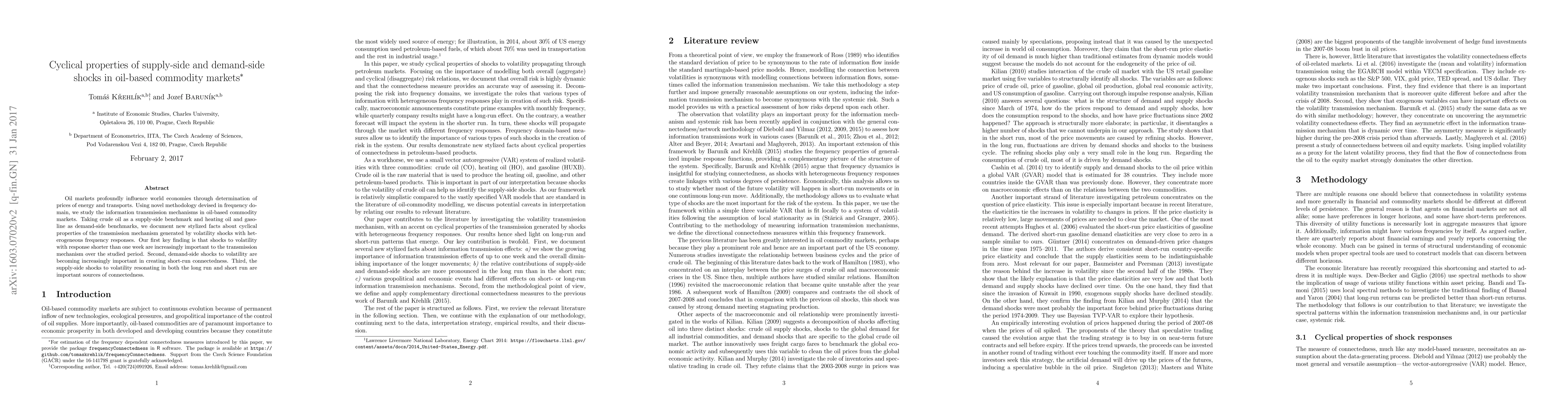 This paper employs novel frequency domain methodology to analyze the cyclical properties of supply-side and demand-side shocks in oil-based commodity markets. It finds that short-term volatility shocks are increasingly significant, with demand-side shocks gaining importance in short-run connectivity, while supply-side shocks remain crucial for both short-term and long-term market dynamics.