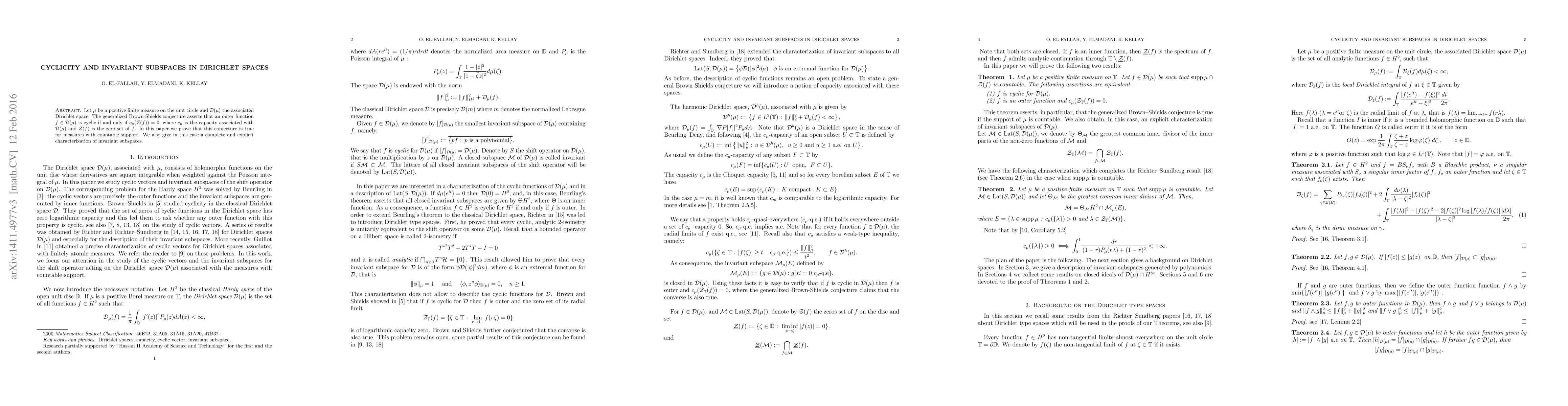 This paper proves the generalized Brown-Shields conjecture for measures with countable support, establishing a characterization of cyclic functions in Dirichlet spaces and explicit invariant subspaces.