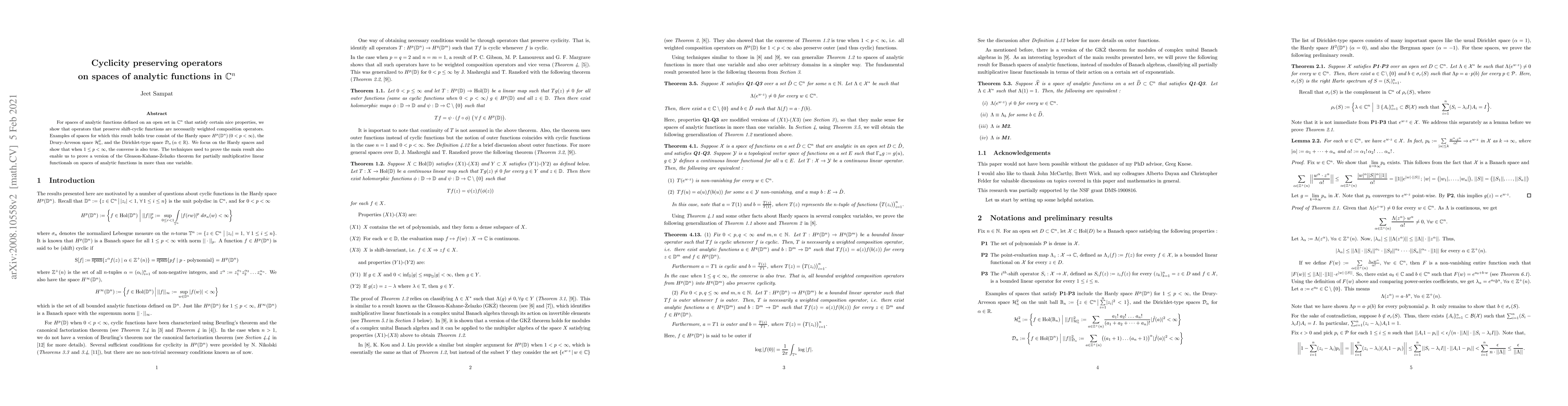 For spaces of analytic functions defined on an open set in $\mathbb{C}^n$ that satisfy certain nice properties, we show that operators that preserve shift-cyclic functions are necessarily weighted composition operators. Examples of spaces for which this result holds true consist of the Hardy space $H^p(\mathbb{D}^n) \, (0 < p < \infty)$, the Drury-Arveson space $\mathcal{H}^2_n$, and the Dirichlet-type space $\mathcal{D}_{\alpha} \, (\alpha \in \mathbb{R})$. We focus on the Hardy spaces and show that when $1 \leq p < \infty$, the converse is also true. The techniques used to prove the main result also enable us to prove a version of the Gleason-Kahane-\.Zelazko theorem for partially multiplicative linear functionals on spaces of analytic functions in more than one variable.