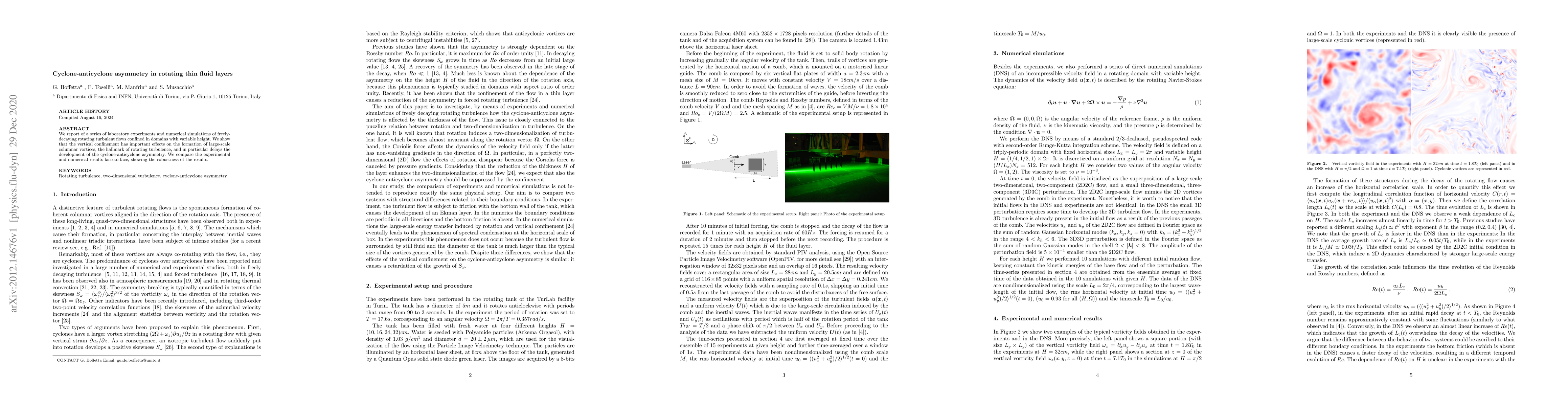 We report of a series of laboratory experiments and numerical simulations of freely-decaying rotating turbulent flows confined in domains with variable height. We show that the vertical confinement has important effects on the formation of large-scale columnar vortices, the hallmark of rotating turbulence, and in particular delays the development of the cyclone-anticyclone asymmetry. We compare the experimental and numerical results face-to-face, showing the robustness of the results.