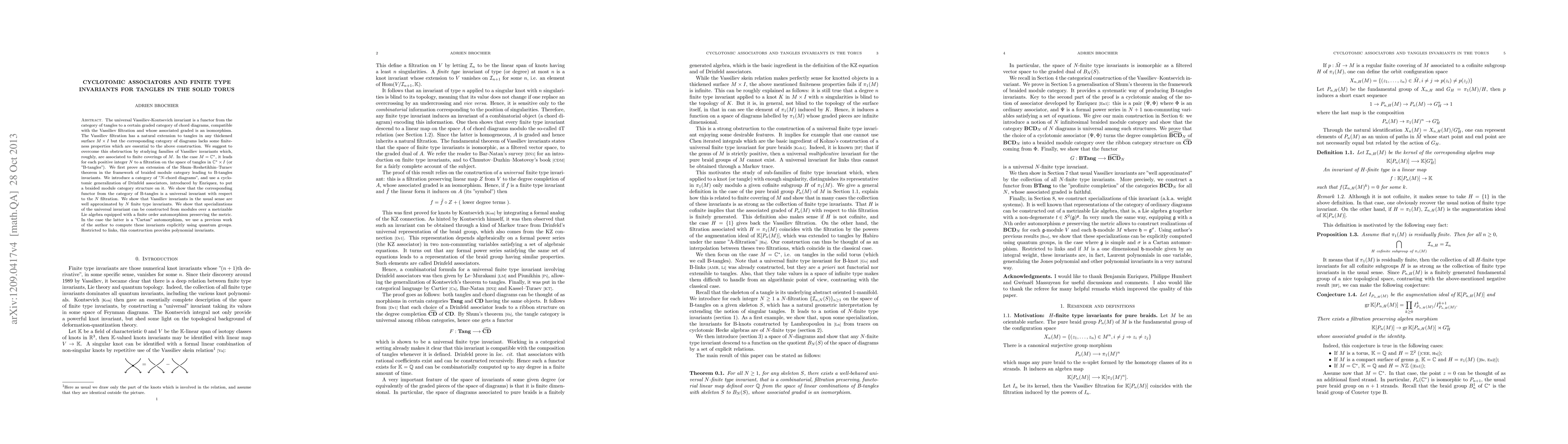 The paper develops a new framework for Vassiliev invariants for tangles in the solid torus using cyclotomic associators, leading to a universal invariant for "B-tangles" and demonstrating how classical Vassiliev invariants can be approximated by finite type invariants. It computes these invariants explicitly for specific automorphisms and produces polynomial link invariants.