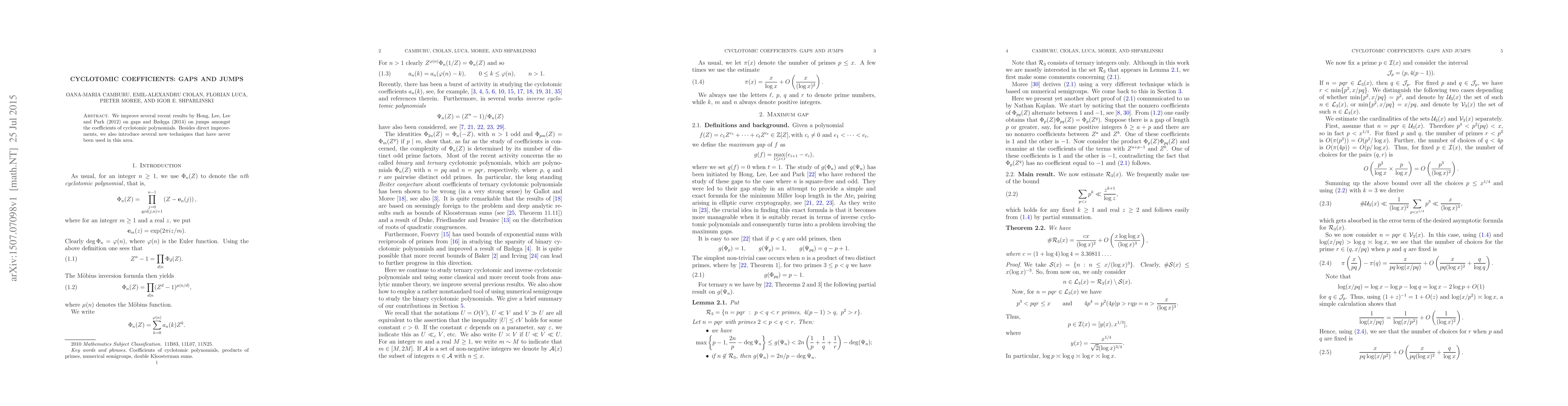 We improve several recent results by Hong, Lee, Lee and Park (2012) on gaps and Bzd\c{e}ga (2014) on jumps amongst the coefficients of cyclotomic polynomials. Besides direct improvements, we also introduce several new techniques that have never been used in this area.