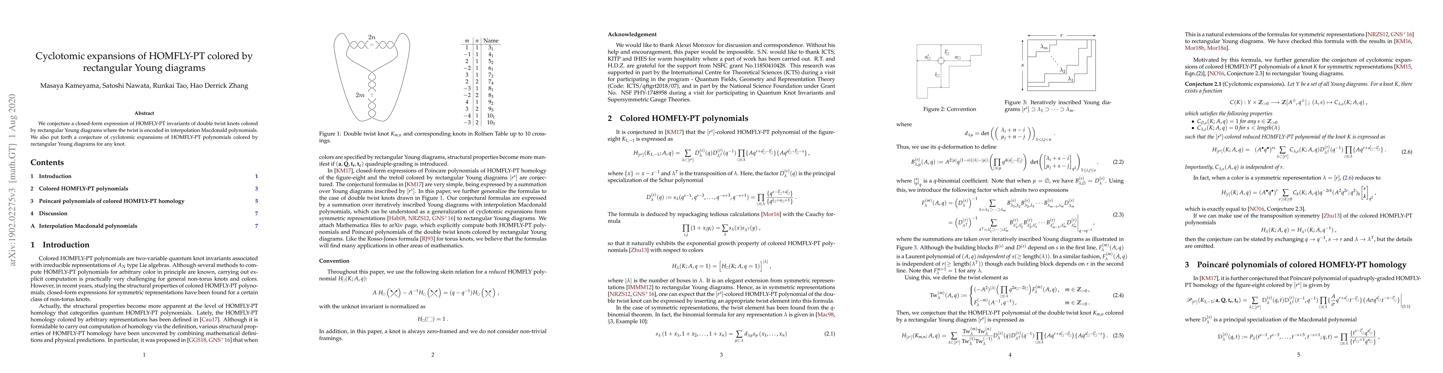 This paper conjectures closed-form expressions for HOMFLY-PT invariants of double twist knots colored by rectangular Young diagrams, encoded through interpolation Macdonald polynomials, and proposes cyclotomic expansions for these invariants for any knot.