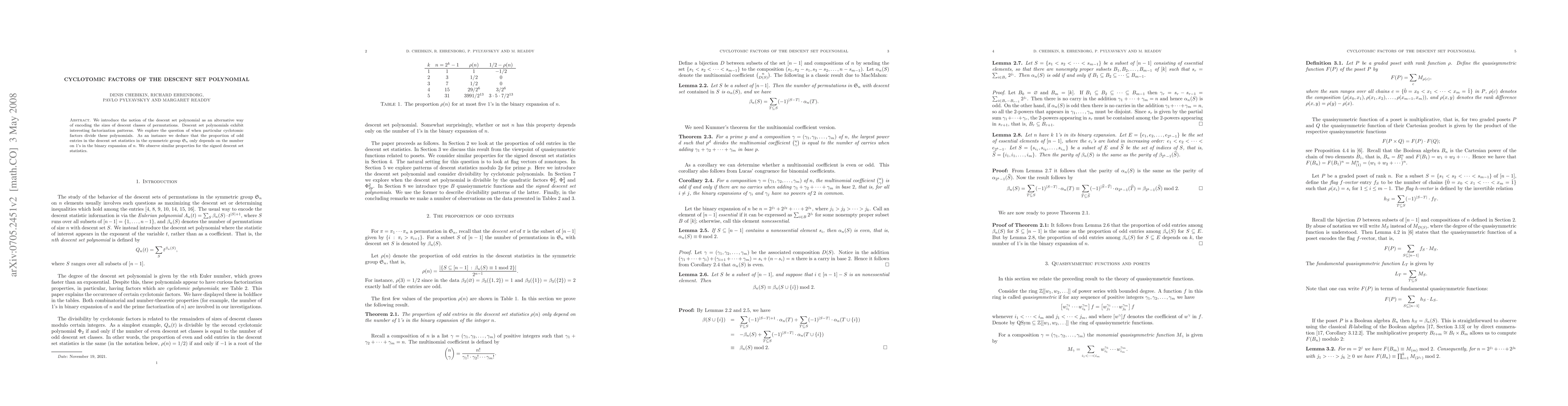 This paper introduces descent set polynomials to encode permutation descent classes and explores their cyclotomic factorization. It finds that the proportion of odd entries in descent set statistics for S_n depends solely on the number of 1's in n's binary expansion, revealing similar properties for signed descent set statistics.