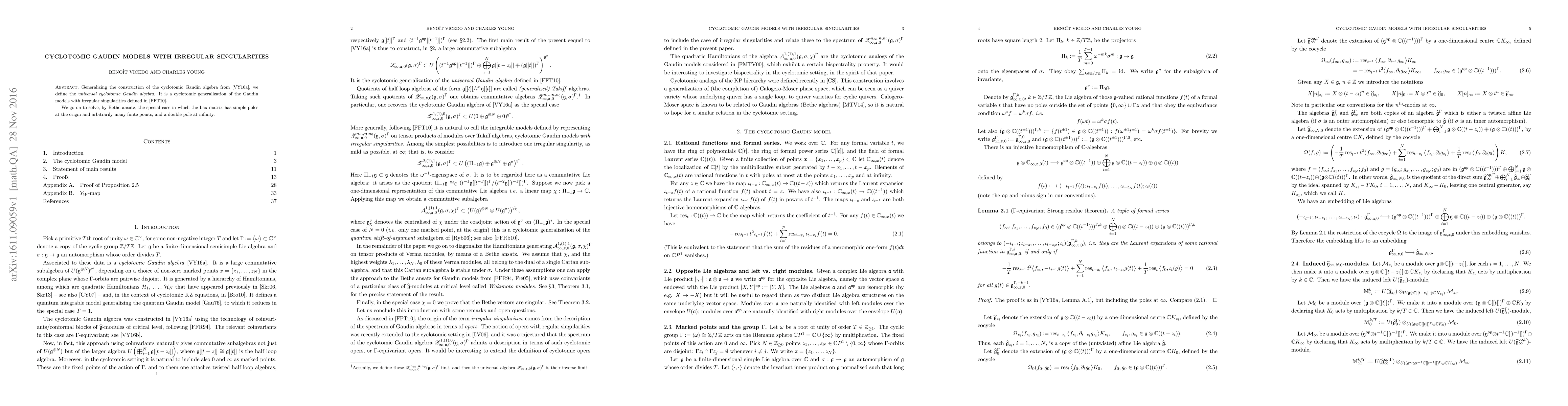 This paper defines a universal cyclotomic Gaudin algebra that generalizes the Gaudin models with irregular singularities. The authors solve a special case using the Bethe ansatz, characterized by a Lax matrix with simple poles at the origin, finite points, and a double pole at infinity.