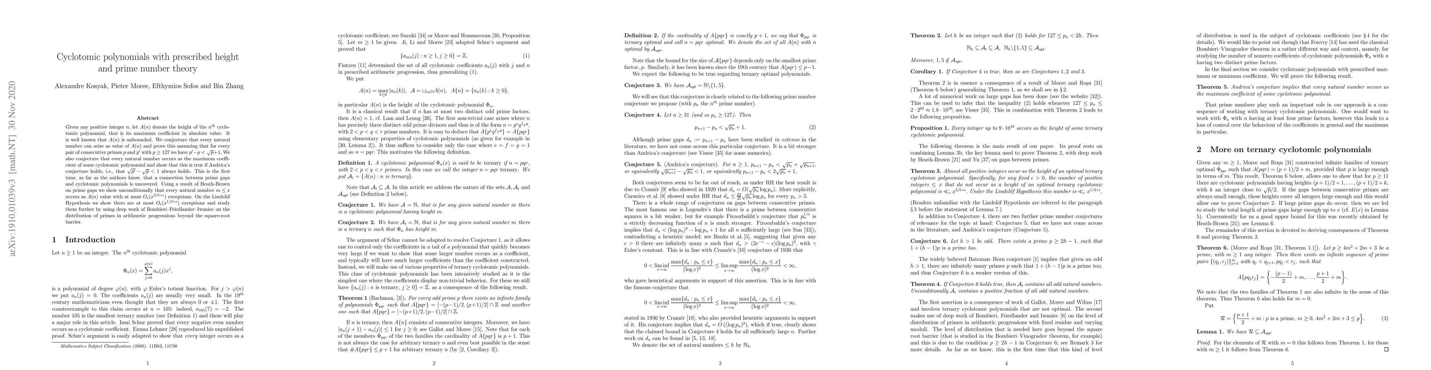 Given any positive integer $n,$ let $A(n)$ denote the height of the $n^{\text{th}}$ cyclotomic polynomial, that is its maximum coefficient in absolute value. It is well known that $A(n)$ is unbounded. We conjecture that every natural number can arise as value of $A(n)$ and prove this assuming that for every pair of consecutive primes $p$ and $p'$ with $p\ge 127$ we have $p'-p<\sqrt{p}+1.$ We also conjecture that every natural number occurs as maximum coefficient of some cyclotomic polynomial and show that this is true if Andrica's conjecture that always $\sqrt{p'}-\sqrt{p}<1$ holds. This is the first time, as far as the authors know, a connection between prime gaps and cyclotomic polynomials is uncovered. Using a result of Heath-Brown on prime gaps we show unconditionally that every natural number $m\le x$ occurs as $A(n)$ value with at most $O_{\epsilon}(x^{3/5+\epsilon})$ exceptions. On the Lindel\"of Hypothesis we show there are at most $O_{\epsilon}(x^{1/2+\epsilon})$ exceptions and study them further by using deep work of Bombieri--Friedlander--Iwaniec on the distribution of primes in arithmetic progressions beyond the square-root barrier.