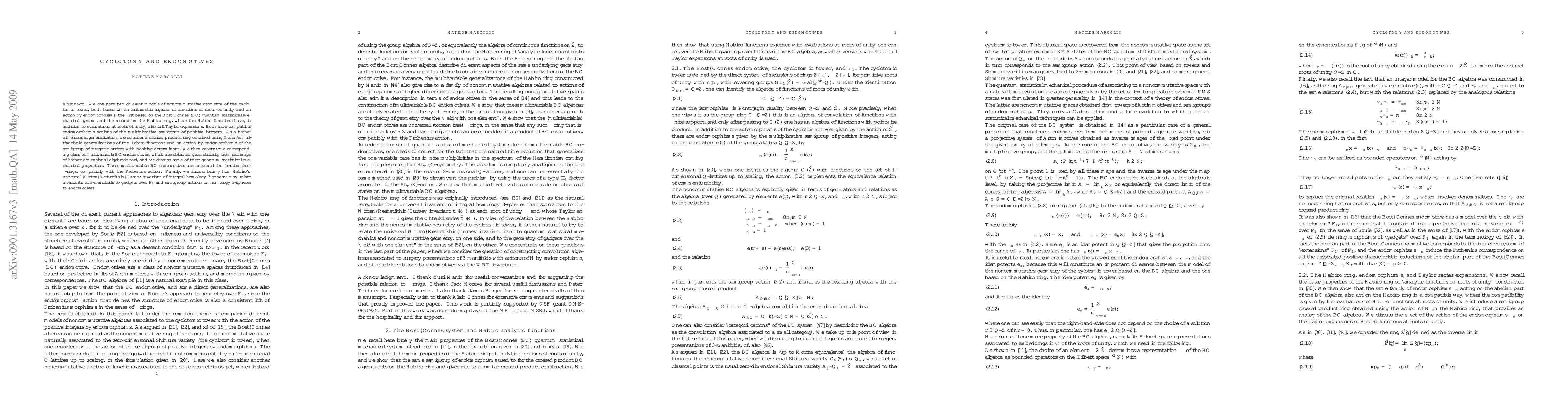 We compare two different models of noncommutative geometry of the cyclotomic tower, both based on an arithmetic algebra of functions of roots of unity and an action by endomorphisms, the first based on the Bost-Connes quantum statistical mechanical system and the second on the Habiro ring, where the Habiro functions have, in addition to evaluations at roots of unity, also full Taylor expansions. Both have compatible endomorphisms actions of the multiplicative semigroup of positive integers. As a higher dimensional generalization, we consider a crossed product ring obtained using Manin's multivariable generalizations of the Habiro functions and an action by endomorphisms of the semigroup of integer matrices with positive determinant. We then construct a corresponding class of multivariable Bost-Connes endomotives, which are obtained geometrically from self maps of higher dimensional algebraic tori, and we discuss some of their quantum statistical mechanical properties. These multivariable Bost-Connes endomotives are universal for (torsion free) Lambda-rings, compatibly with the Frobenius action. Finally, we discuss briefly how Habiro's universal Witten--Reshetikhin--Turaev invariant of integral homology 3-spheres may relate invariants of 3-manifolds to gadgets over the field with one element and semigroup actions on homology 3-spheres to endomotives.